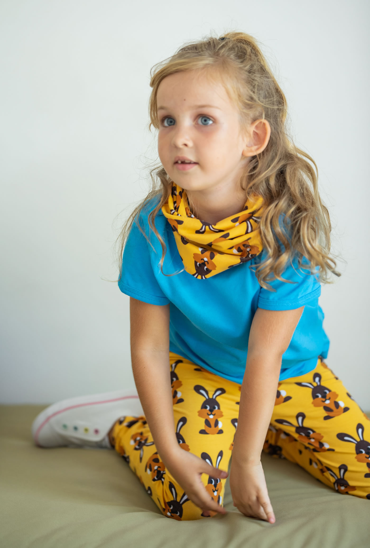 Leggings in gelb mit Hasen-Motiven von MAXOMORRA. Ein flexibler und anschmiegsamer Gummibund ermöglicht ein einfaches An- und Ausziehen. Das weiche Material garantiert einen hohen Tragekomfort.