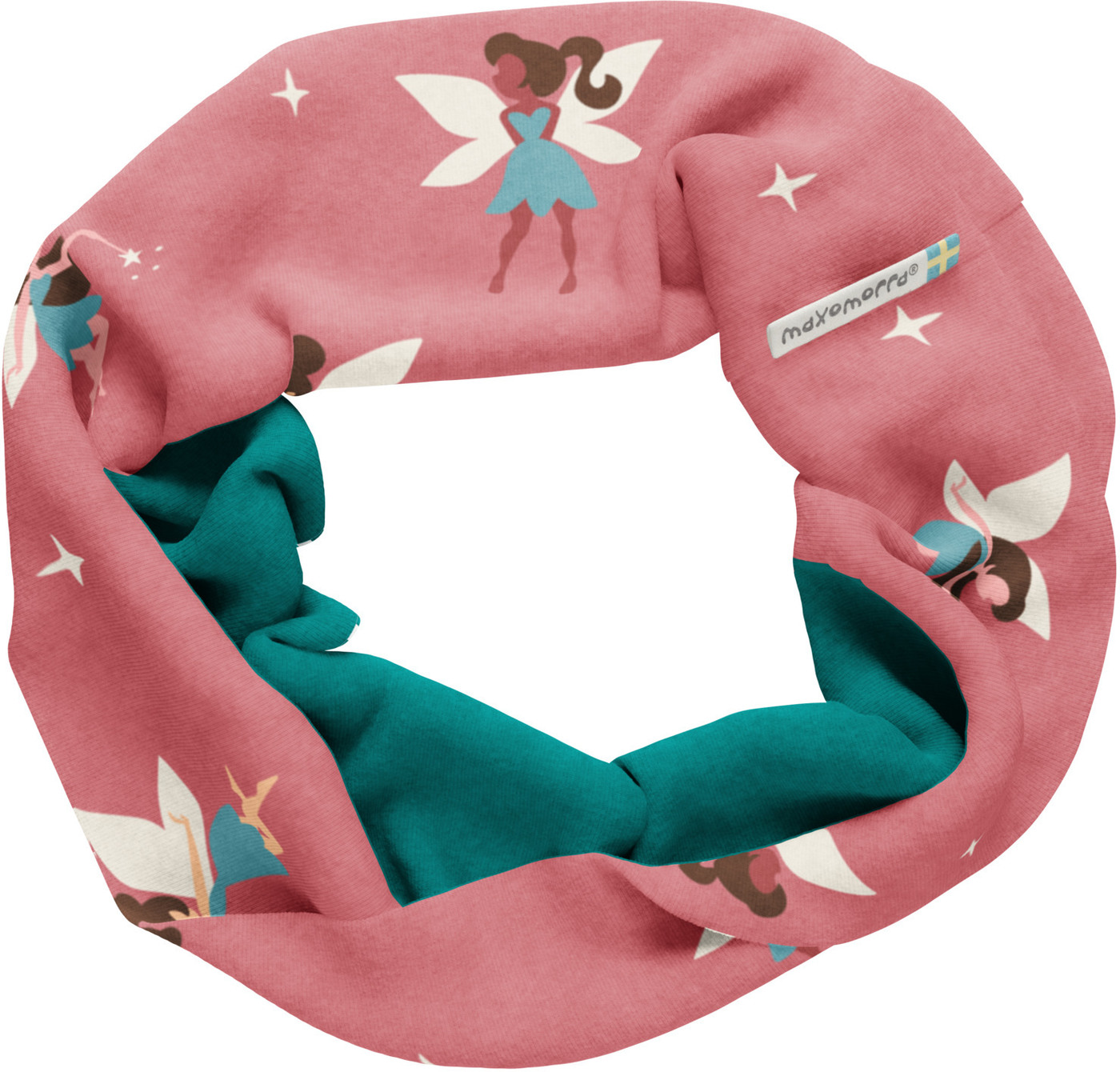 Dieser schöne Loop-Schal von Maxomorra ist aus hochwertiger Bio-Baumwolle gefertigt und entzückt mit vielen verschieden Feen, die in türkisen Kleidern ihren Zauber verteilen. 🧚‍♀️