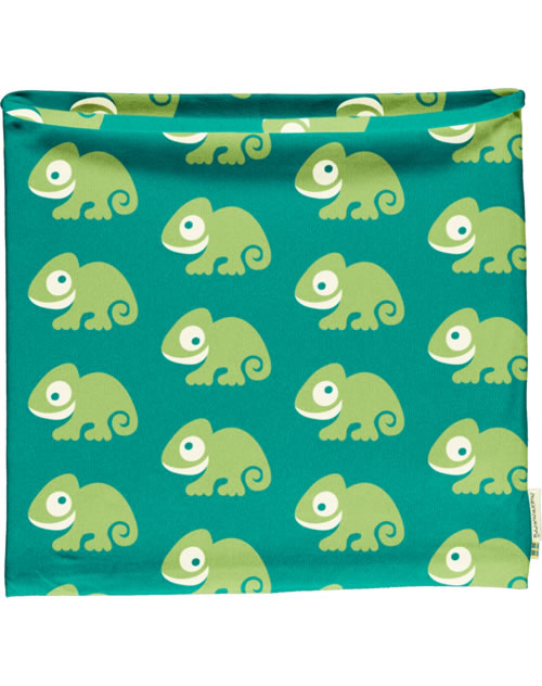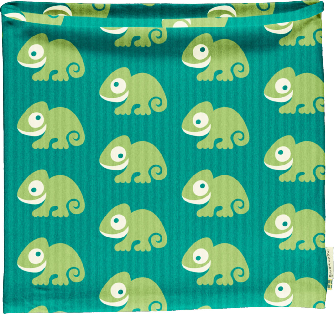 Doppelt gearbeiteter Schlauchschal in grün mit Chamäleon-Muster von MAXOMORRA. So ist er ein idealer Begleiter für die kühleren Tage. Einfach über den Kopf ziehen und los geht's.