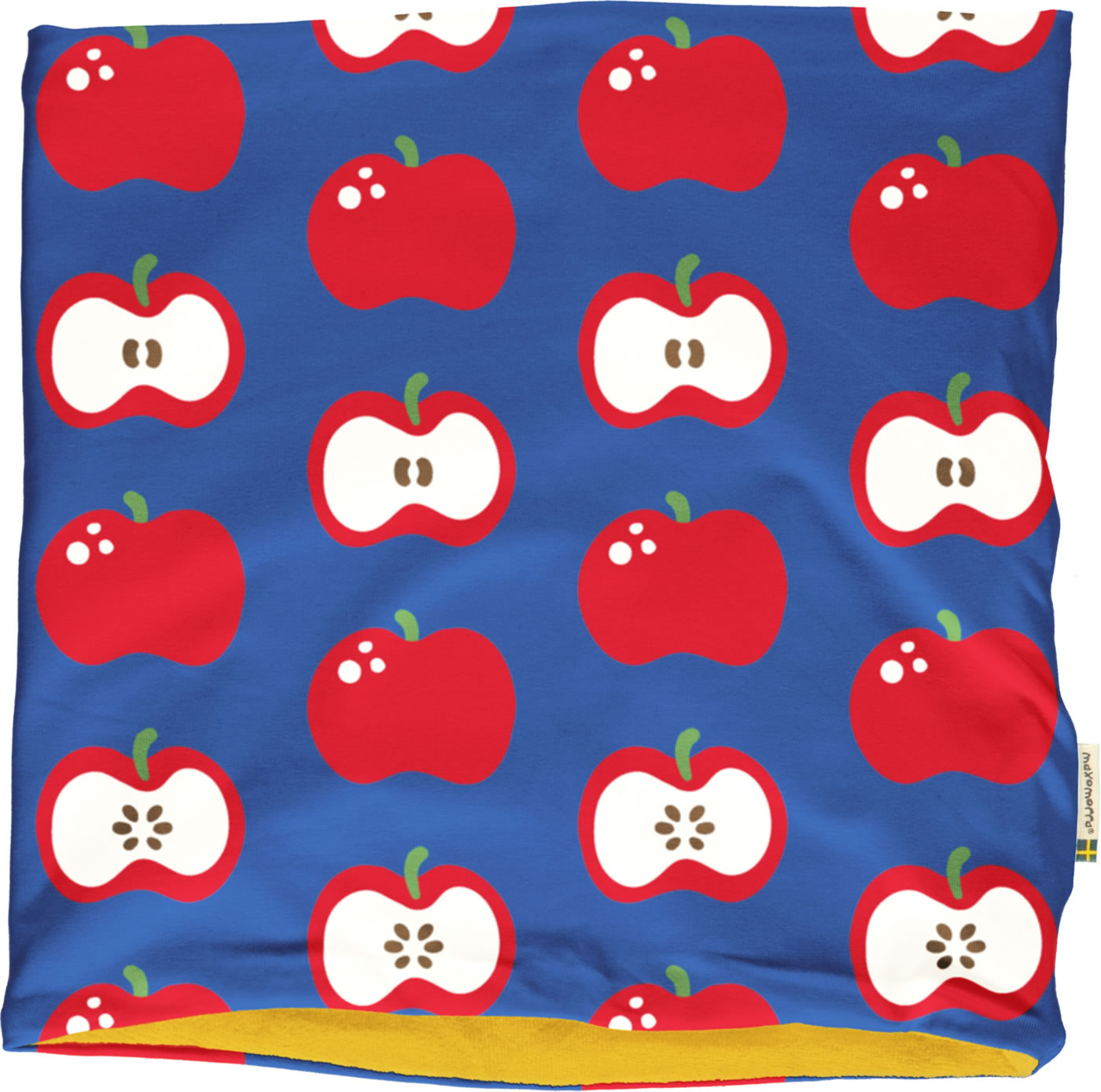 Doppelt gearbeiteter Schlauchschal in blau mit Apfel-Motiv von MAXOMORRA. So ist er ein idealer Begleiter für die kühleren Tage. Einfach über den Kopf ziehen und los geht's. Innen mit weichem Velour gefüttert.