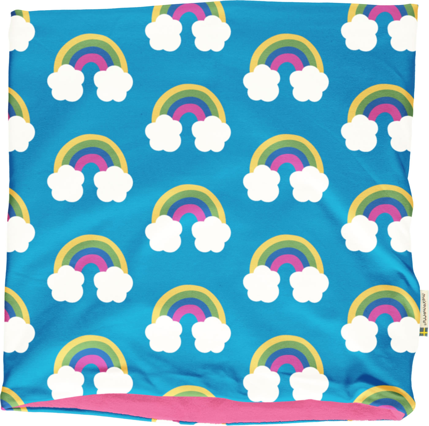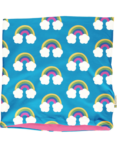 Doppelt gearbeiteter Schlauchschal in blau mit Regenbogen-Motiven von MAXOMORRA. So ist er ein idealer Begleiter für die kühleren Tage. Einfach über den Kopf ziehen und los geht's. Innen mit weichem Velour gefüttert.
