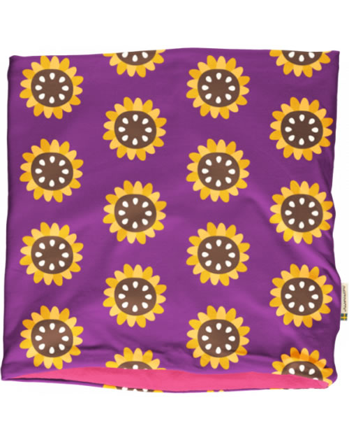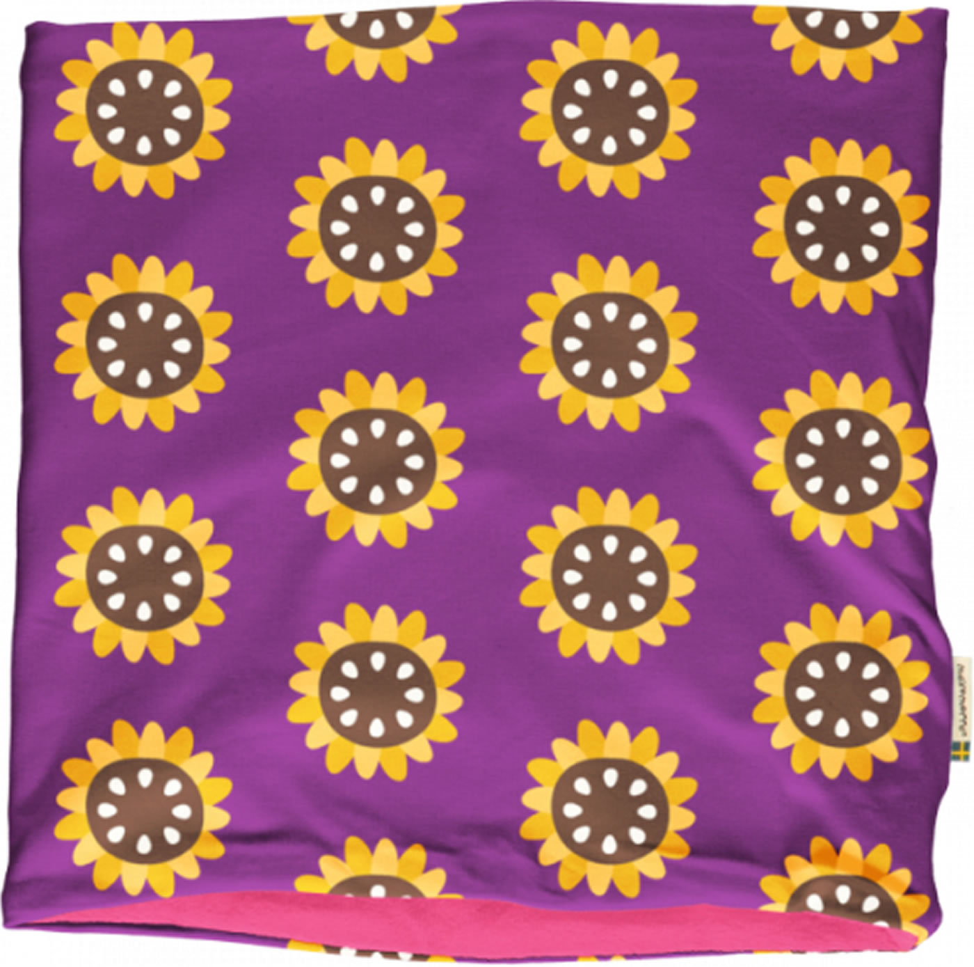 Doppelt gearbeiteter Schlauchschal in lila mit Sonnenblumen-Motiv von MAXOMORRA. So ist er ein idealer Begleiter für die kühleren Tage. Einfach über den Kopf ziehen und los geht's. Innen mit weichem Velour gefüttert.