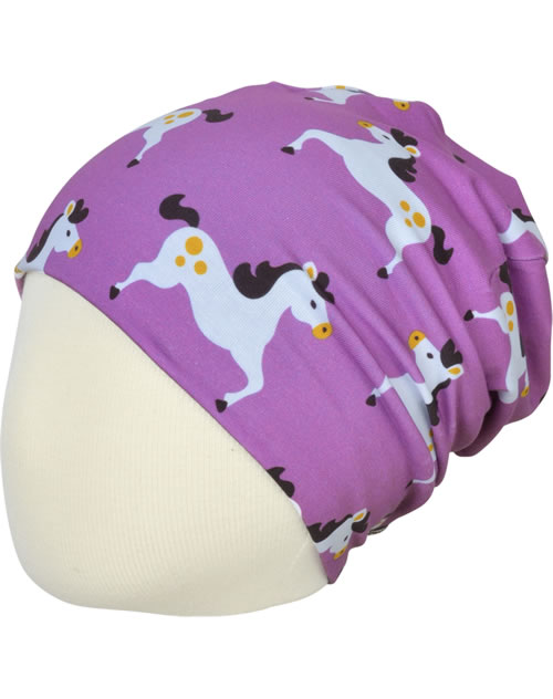 Maxomorra Mütze Beanie HORSE lila GOTS