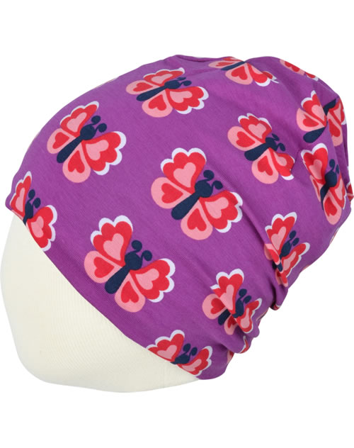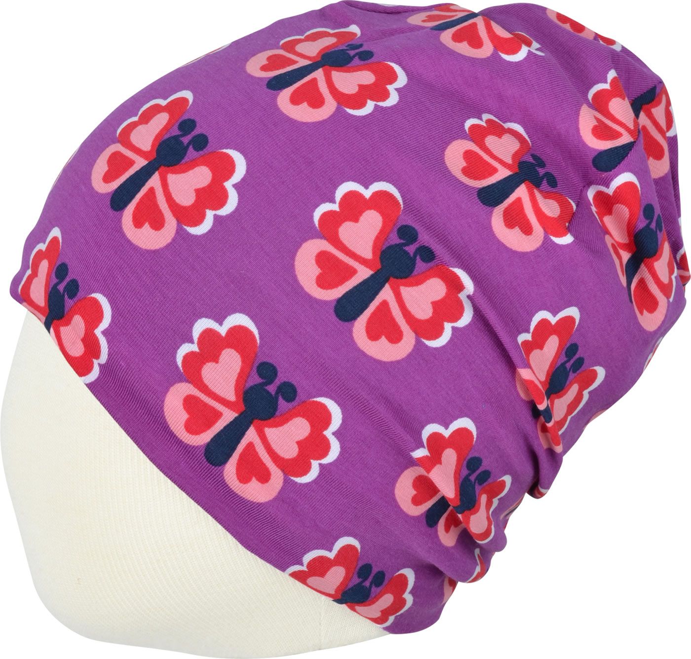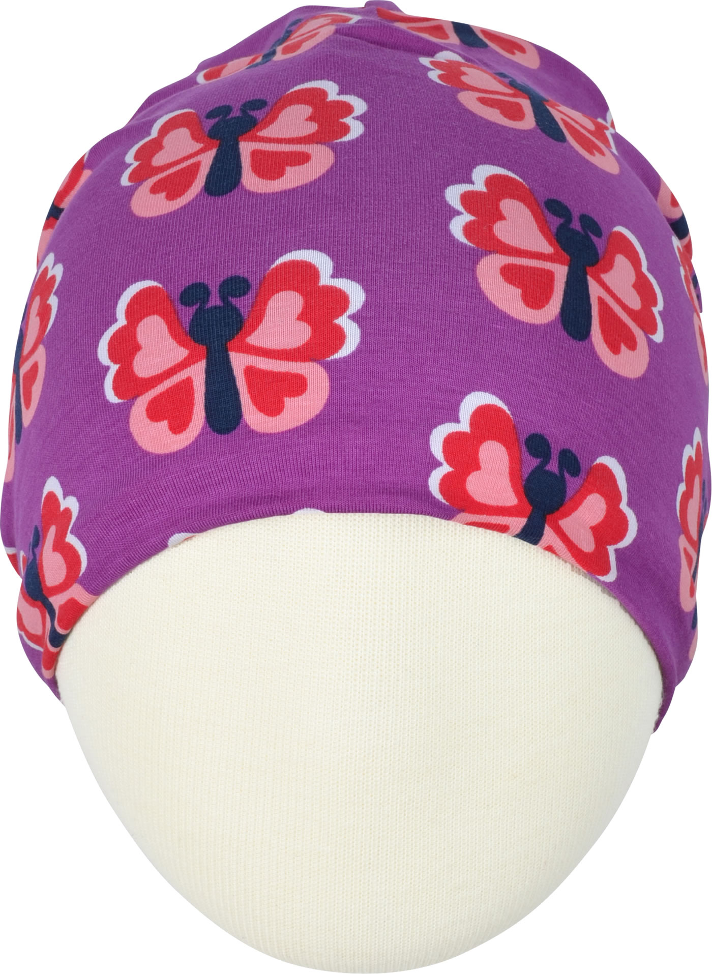 Maxomorra Mütze m. Velours-Futter BUTTERFLY lila