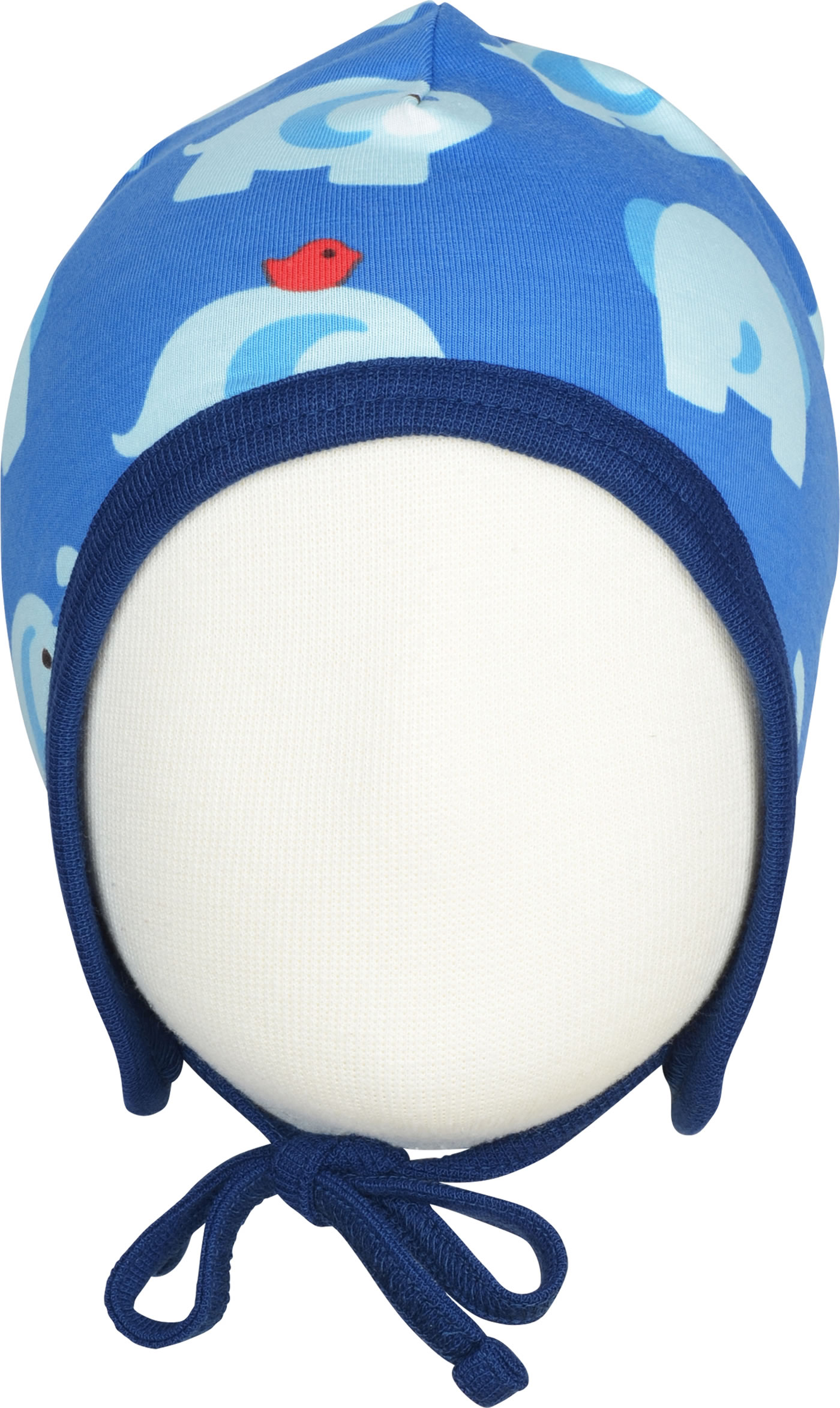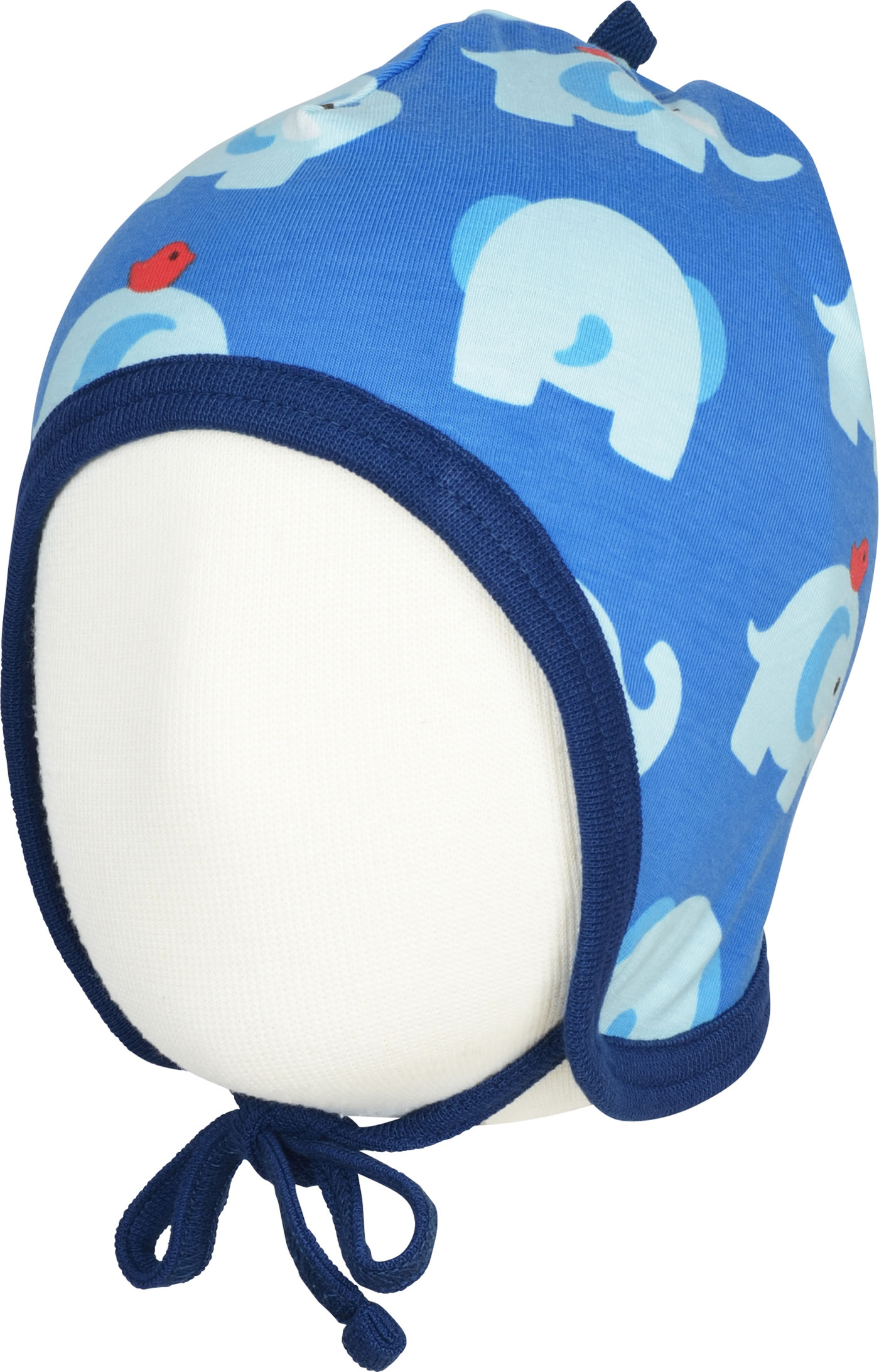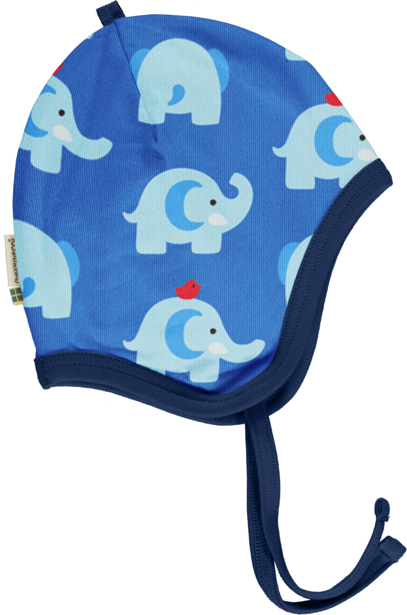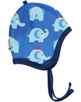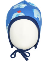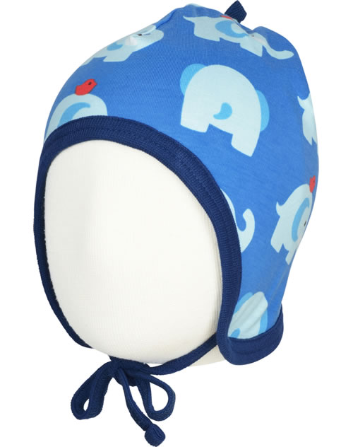 Maxomorra Mütze zum Binden ELEPHANT FRIENDS blau GOTS