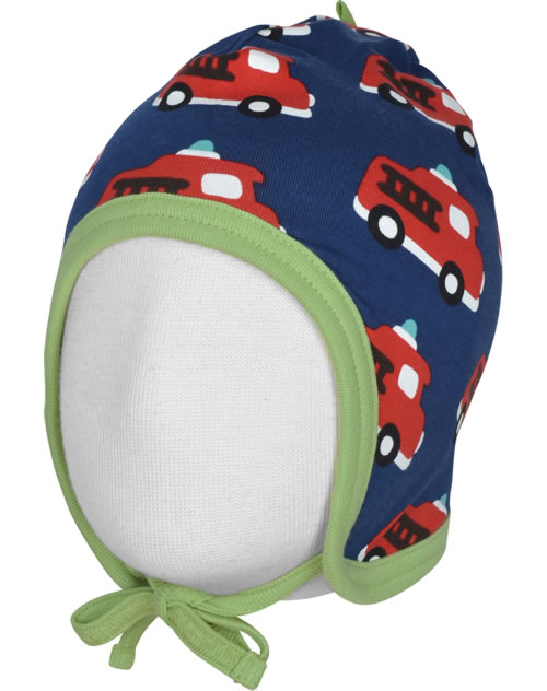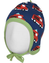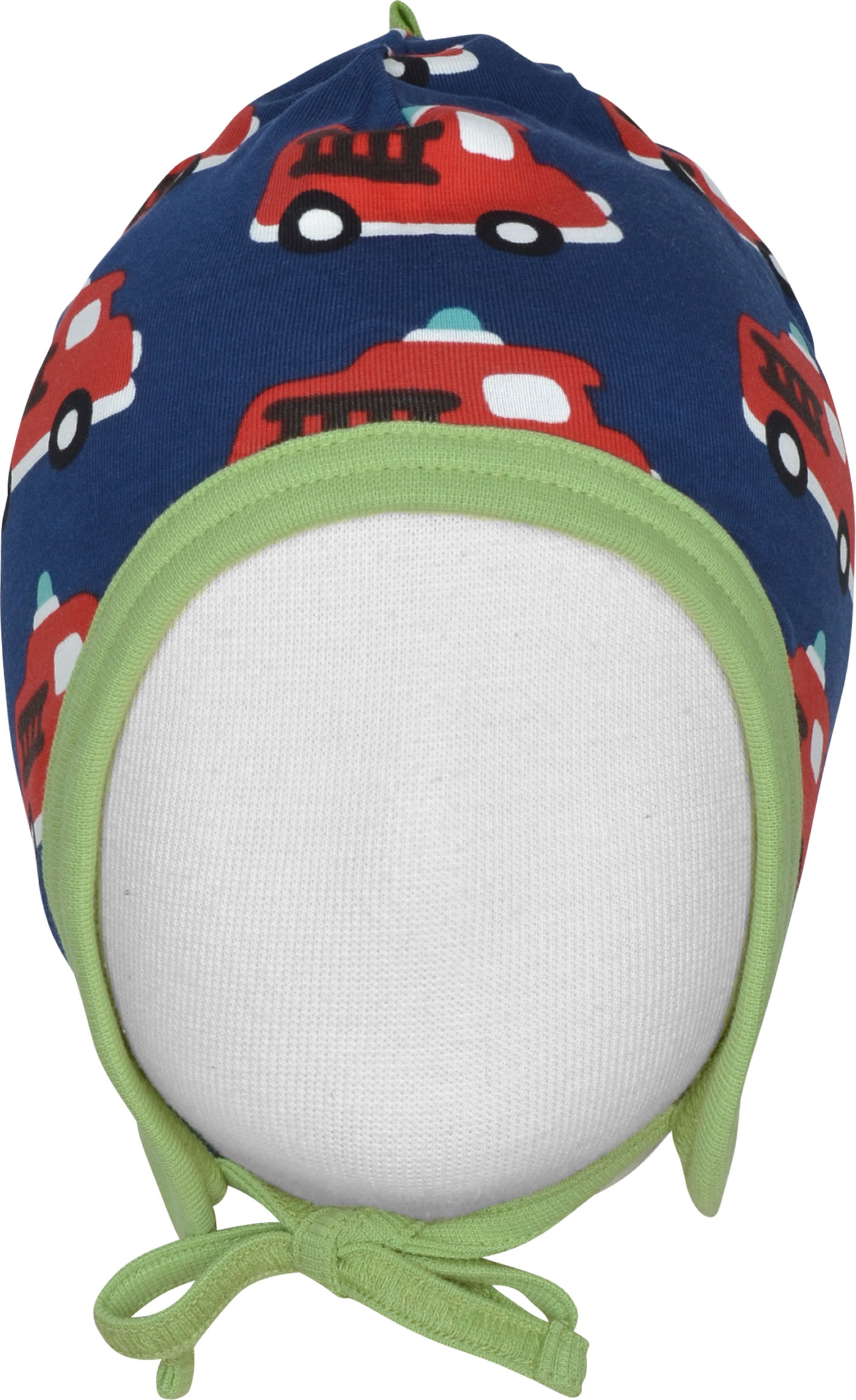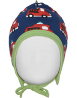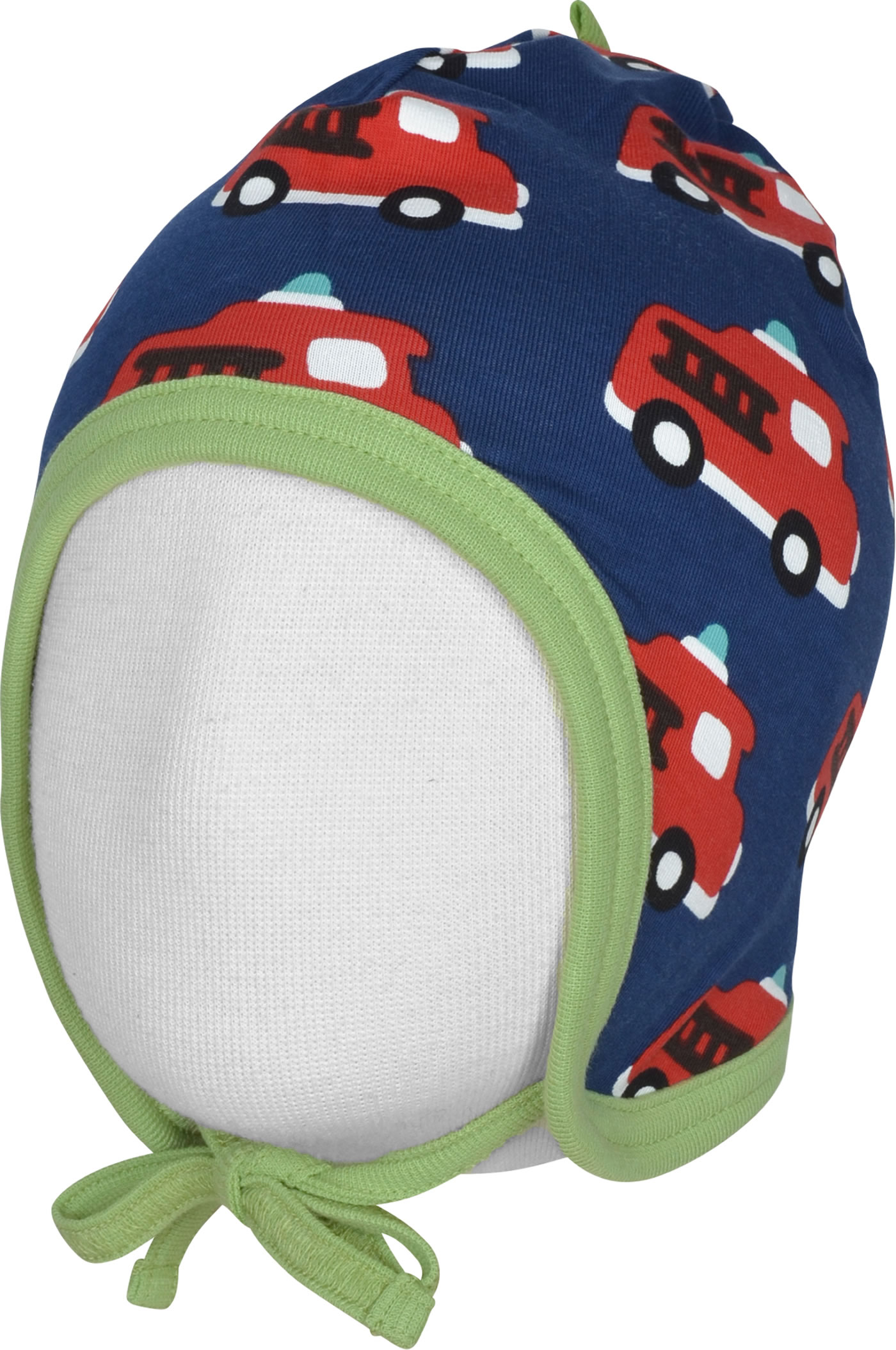 Maxomorra Mütze zum Binden m. Velours-Futter FIRE TRUCK blau