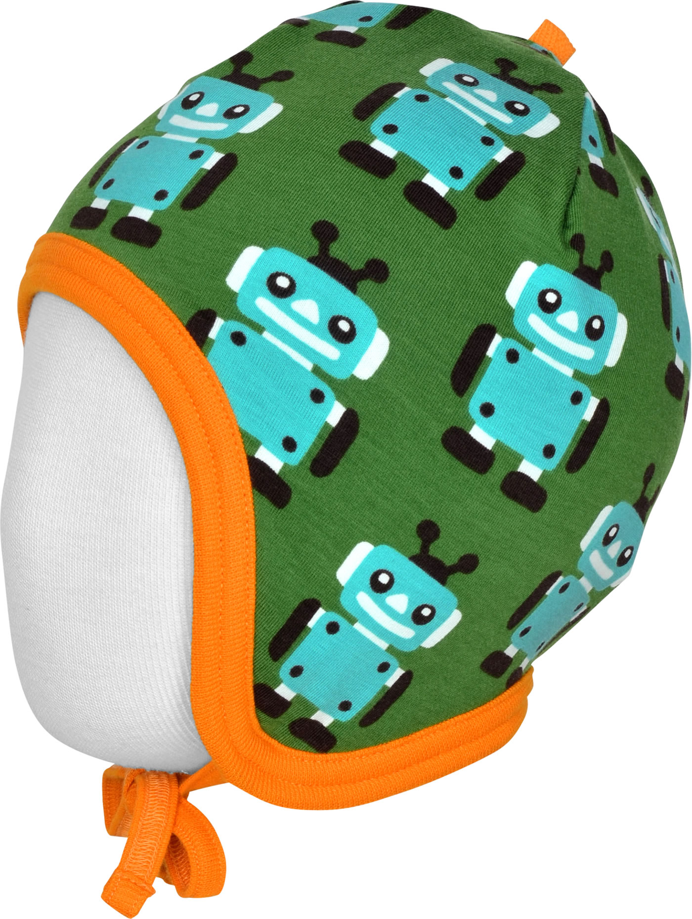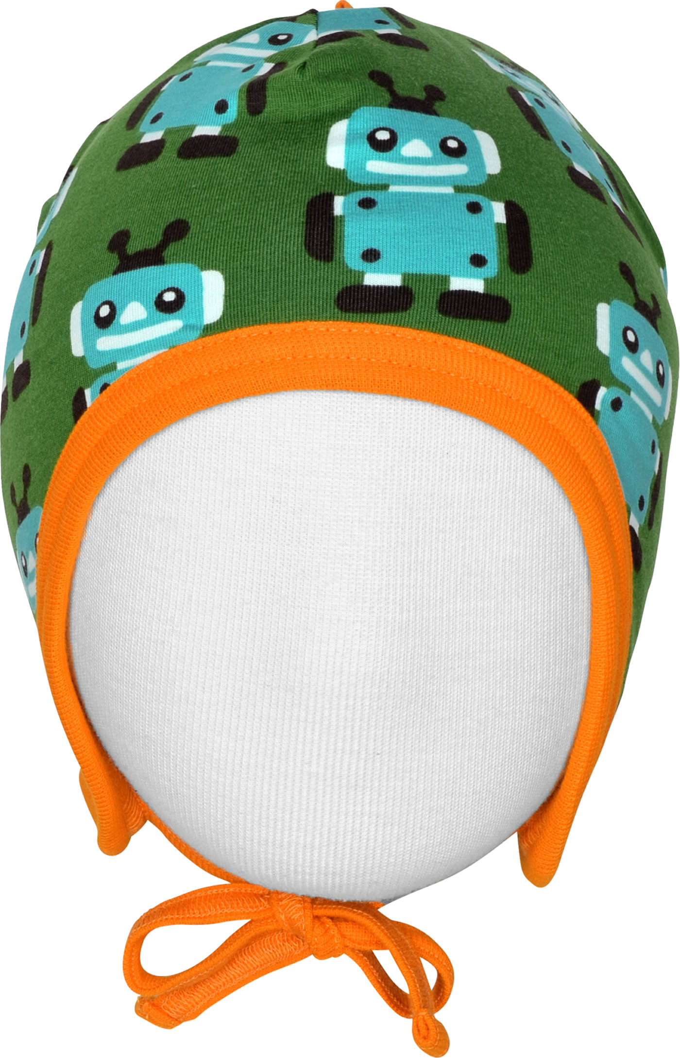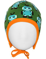Maxomorra Mütze zum Binden m. Velours-Futter ROBOT grün