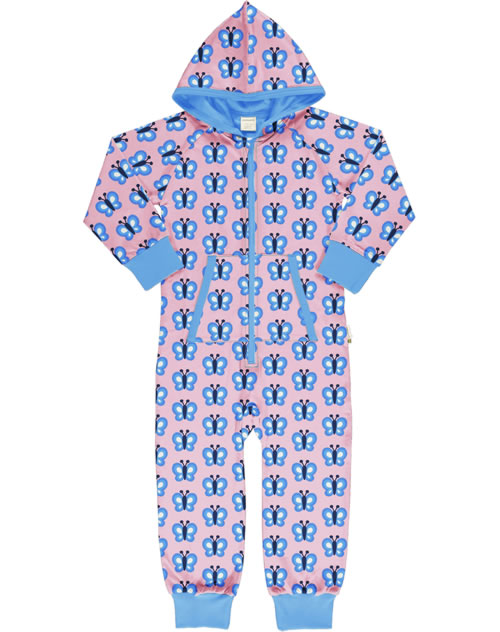 Maxomorra Overall mit Kapuze BLUEWING BUTTERFLY rosa GOTS