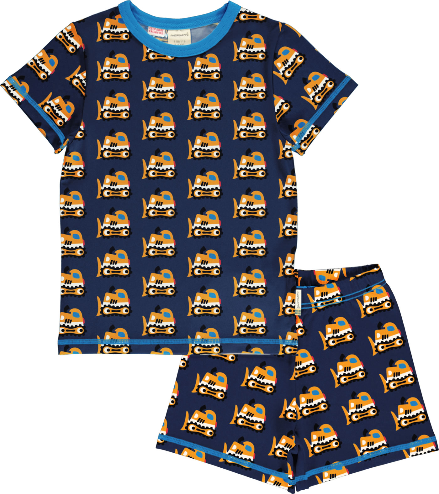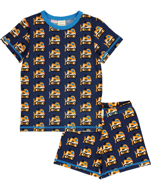 Maxomorra Pyjama kurz BULLDOZER blau SP22AX02-2216 GOTS