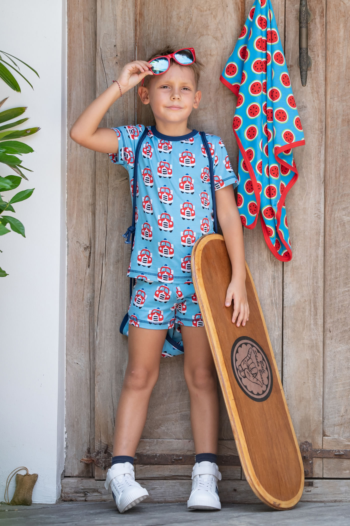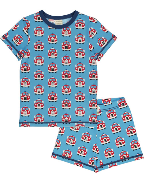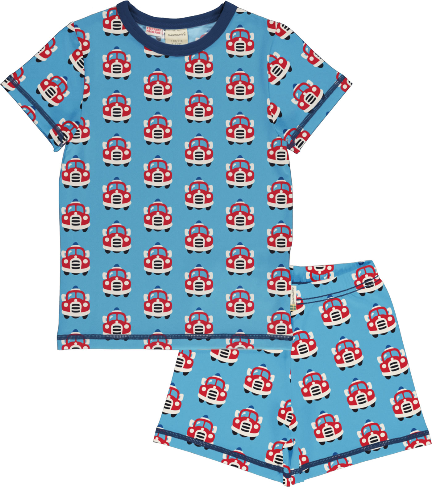 Maxomorra Pyjama kurz FIRE TRUCK blau SP22BX02-2216 GOTS