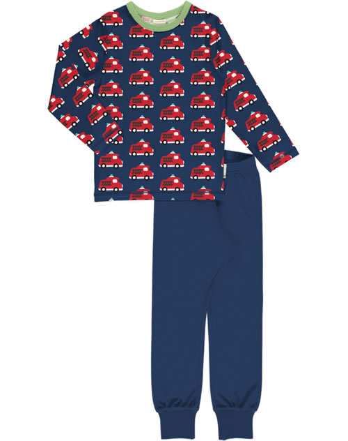 Maxomorra Pyjama lang FIRE TRUCK blau