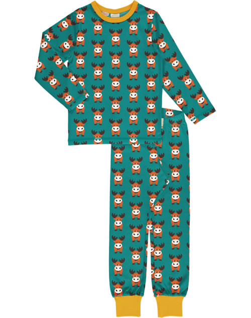 Maxomorra Pyjama lang NORDIC MOOSE grün