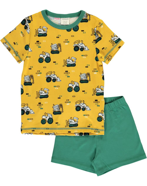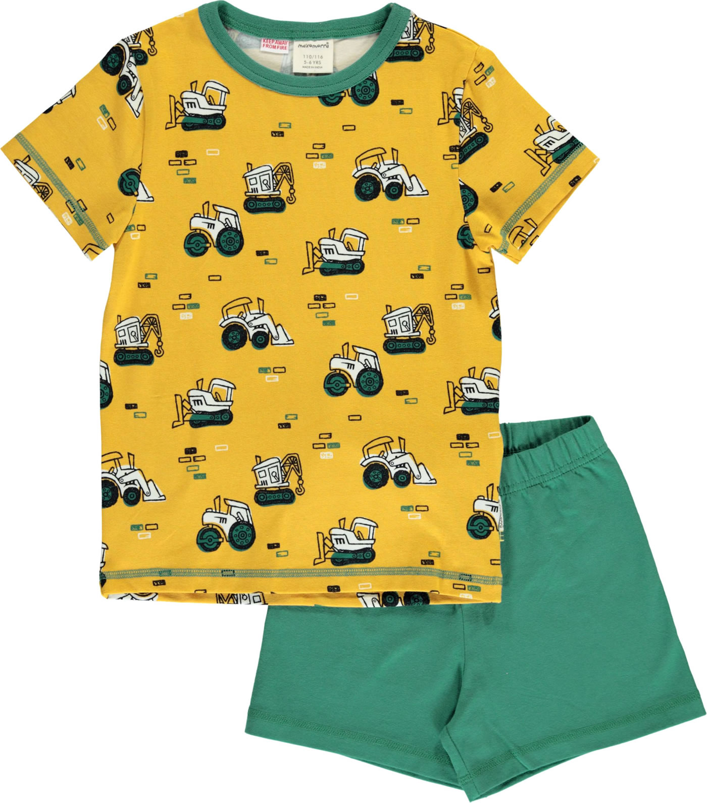 Maxomorra Pyjama Schlafanzug kurz BAGGER gelb/grün