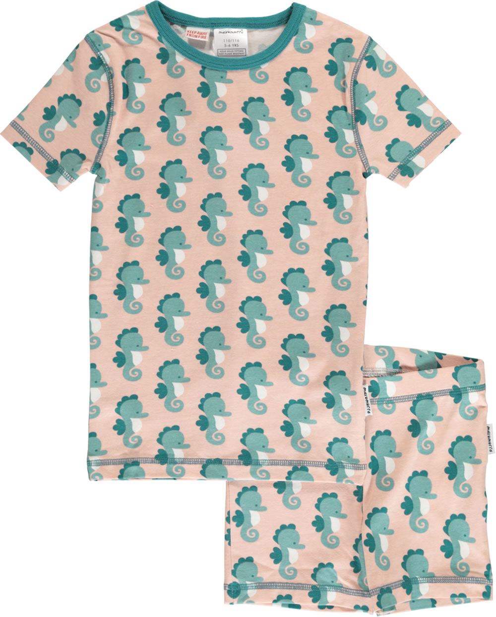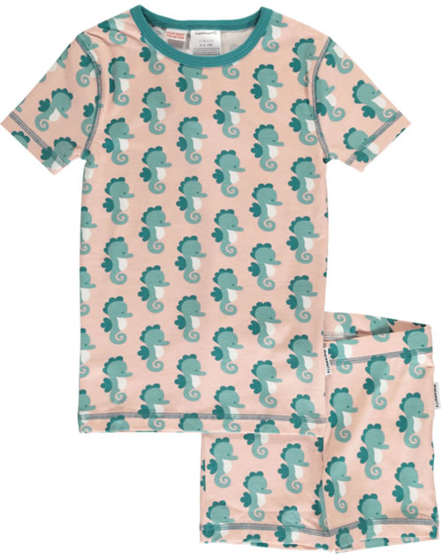 Maxomorra Pyjama Schlafanzug kurz Slim SEEPFERDCHEN blau/rosa