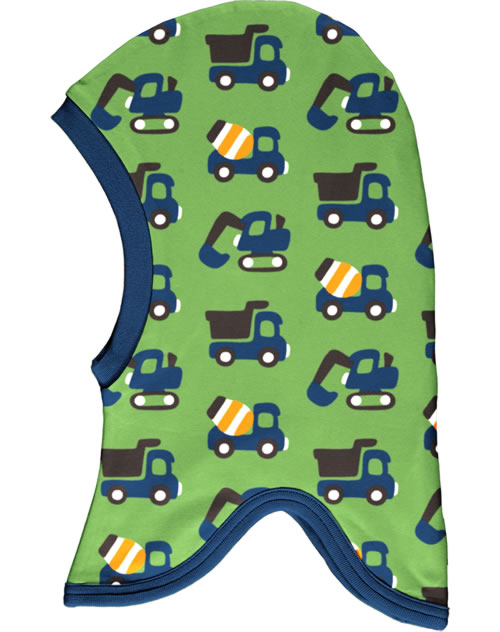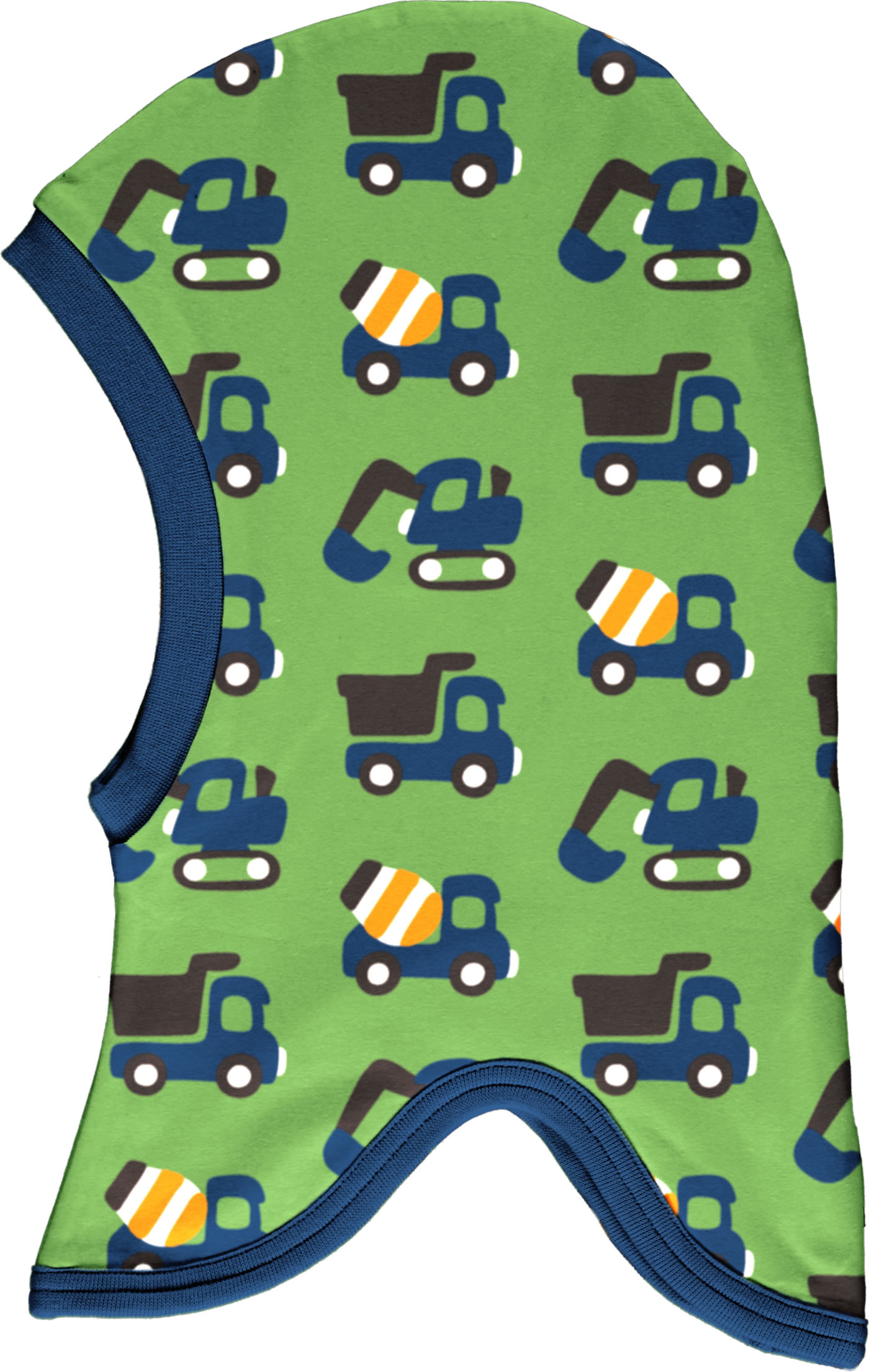 Tolle Schlupfmütze in grün mit Baustellen-Motiven von MAXOMORRA. Die praktische Mütze hält an kalten Tagen schön warm, da sie Kopf und Hals gleichermaßen bedeckt. Auf der Innenseite ist die Mütze mit weichem Velours gefüttert.
