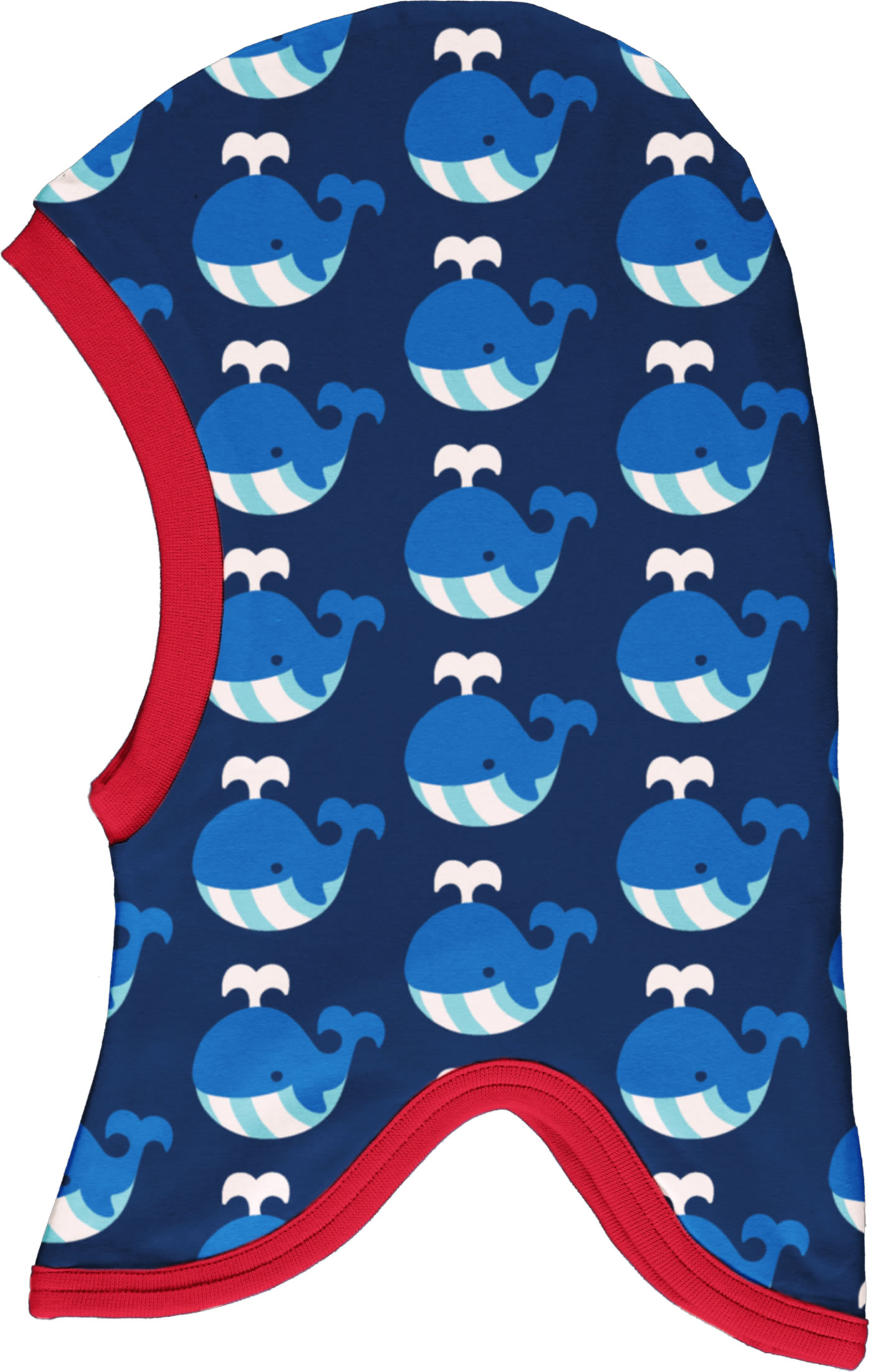 Tolle Schlupfmütze in blau mit Wal-Motiven von MAXOMORRA. Die praktische Mütze hält an kalten Tagen schön warm, da sie Kopf und Hals gleichermaßen bedeckt. Auf der Innenseite ist die Mütze mit weichem Velours gefüttert.