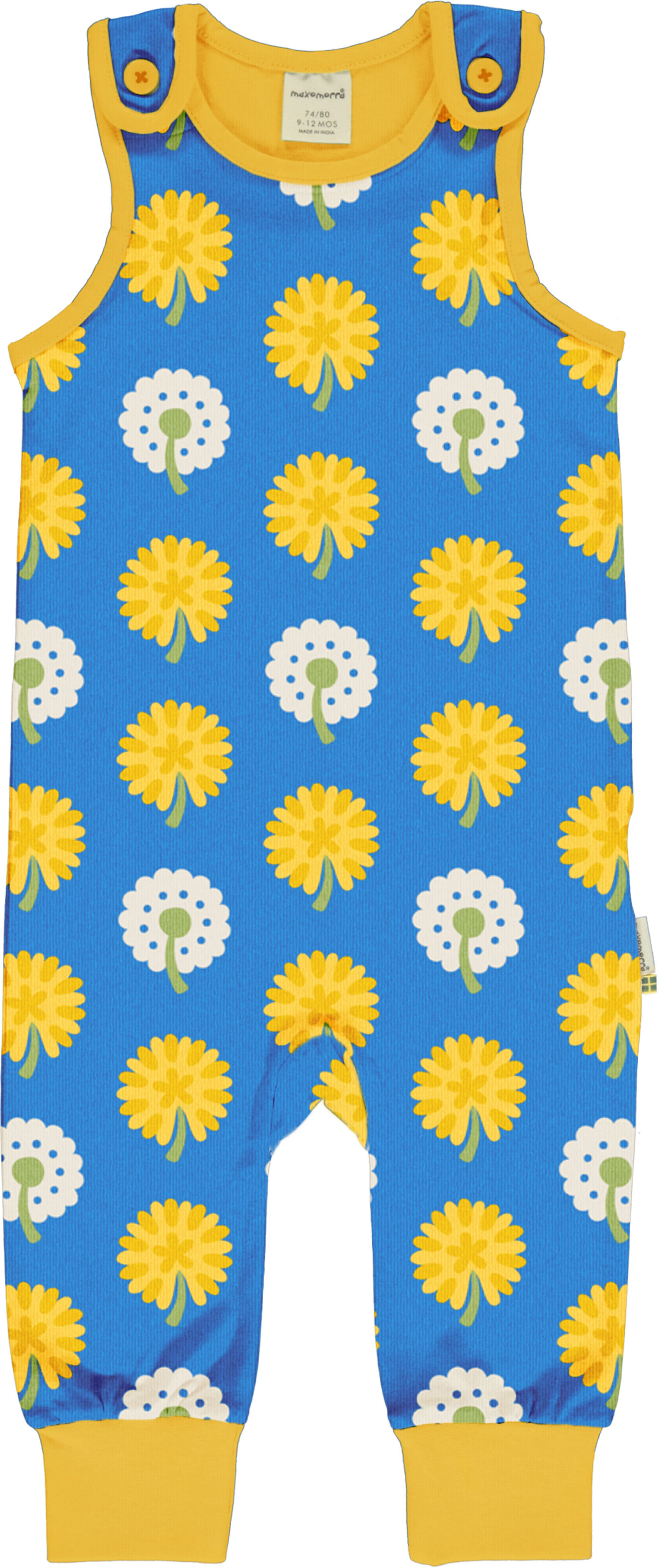 Toller Spieler mit sonnengelbem Löwenzahn-Motiv von MAXOMORRA. Die Knöpfe an den Trägern machen das An- und Ausziehen zu einem Kinderspiel. Das weiche Material bietet einen hohen Tragekomfort.