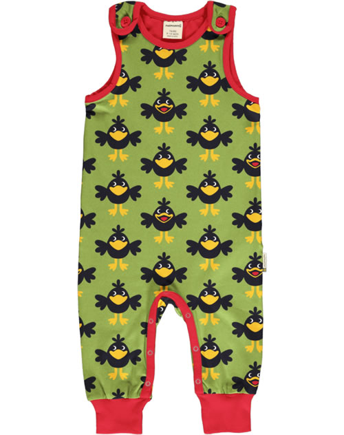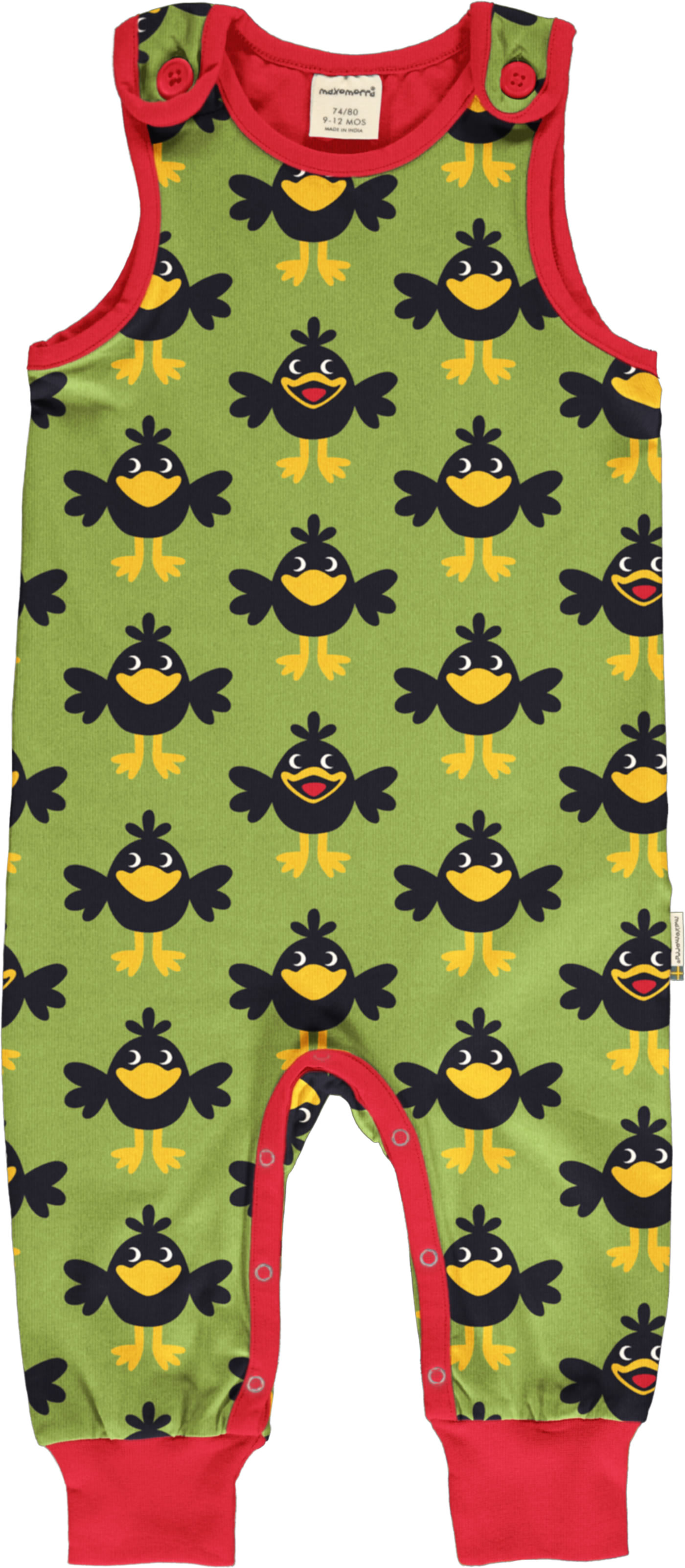 Toller Spieler in grün mit buntem Raben-Motiv von MAXOMORRA. Die Knöpfe an den Trägern machen das An- und Ausziehen zu einem Kinderspiel. Das weiche Material bietet einen hohen Tragekomfort.