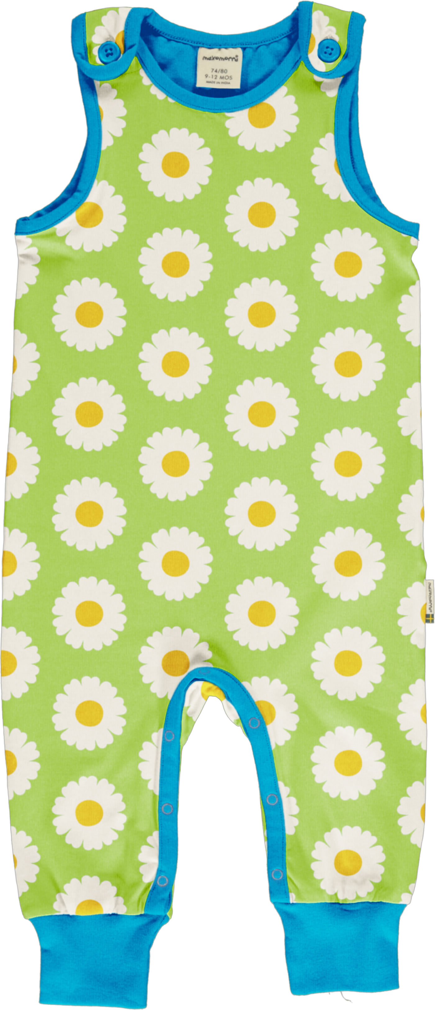 Toller Spieler in grün mit buntem Gänseblümchen-Motiv von MAXOMORRA. Die Knöpfe an den Trägern machen das An- und Ausziehen zu einem Kinderspiel. Das weiche Material bietet einen hohen Tragekomfort.