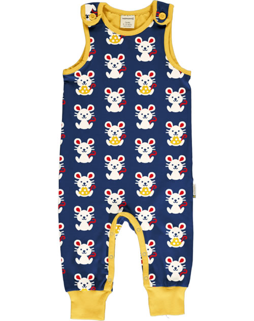 Maxomorra Strampler mit Knöpfen MOUSE blau SP22AX05-2265 GOTS