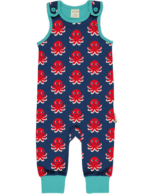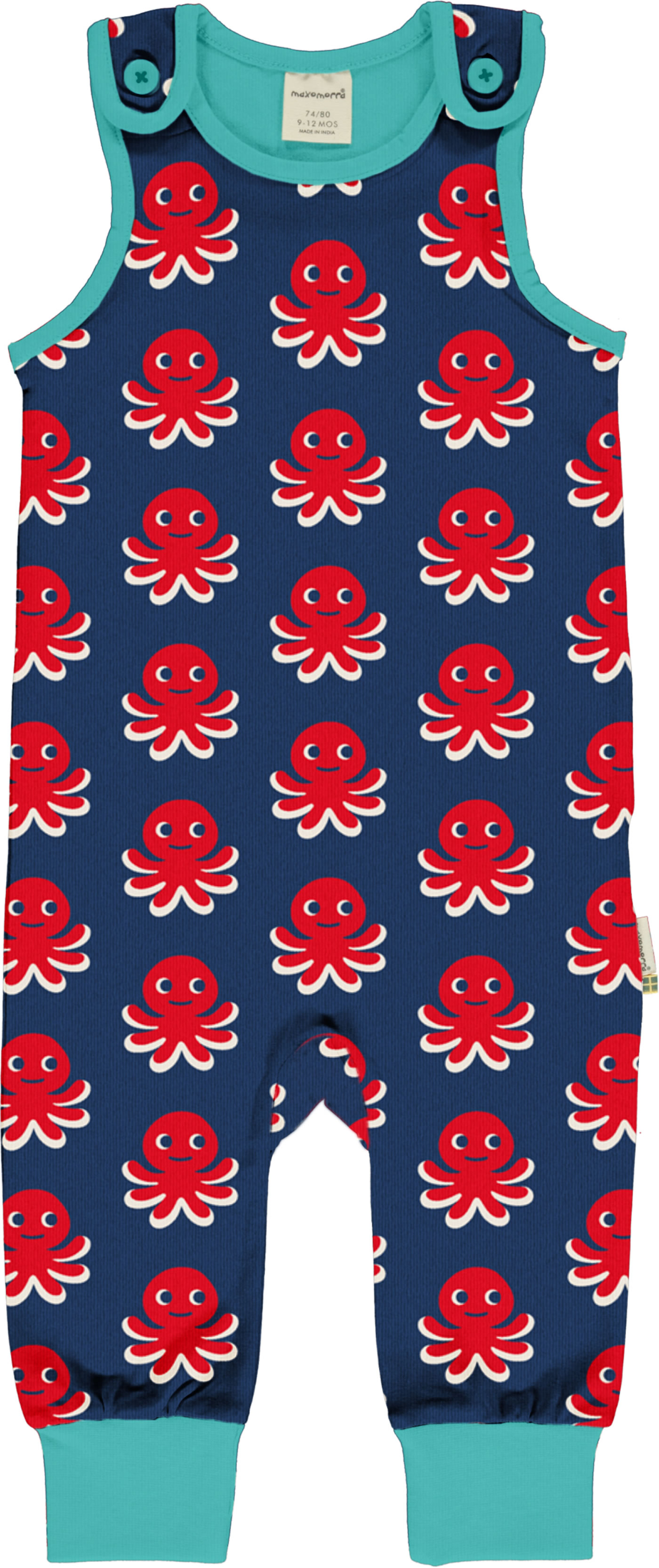 Toller Spieler in blau mit rotem Oktopus-Motiv von MAXOMORRA. Die Knöpfe an den Trägern machen das An- und Ausziehen zu einem Kinderspiel. Das weiche Material bietet einen hohen Tragekomfort.
