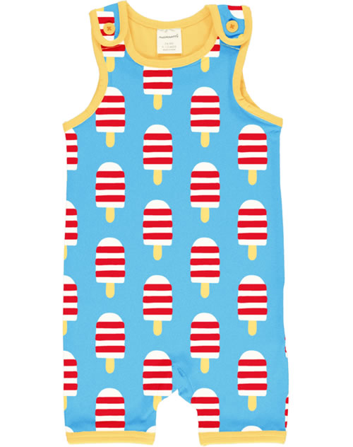 Toller Spieler in blau mit kurzen Beinen und Eis-Motiv von MAXOMORRA. Die Knöpfe an den Trägern machen das An- und Ausziehen zu einem Kinderspiel. Das weiche Material bietet einen hohen Tragekomfort.