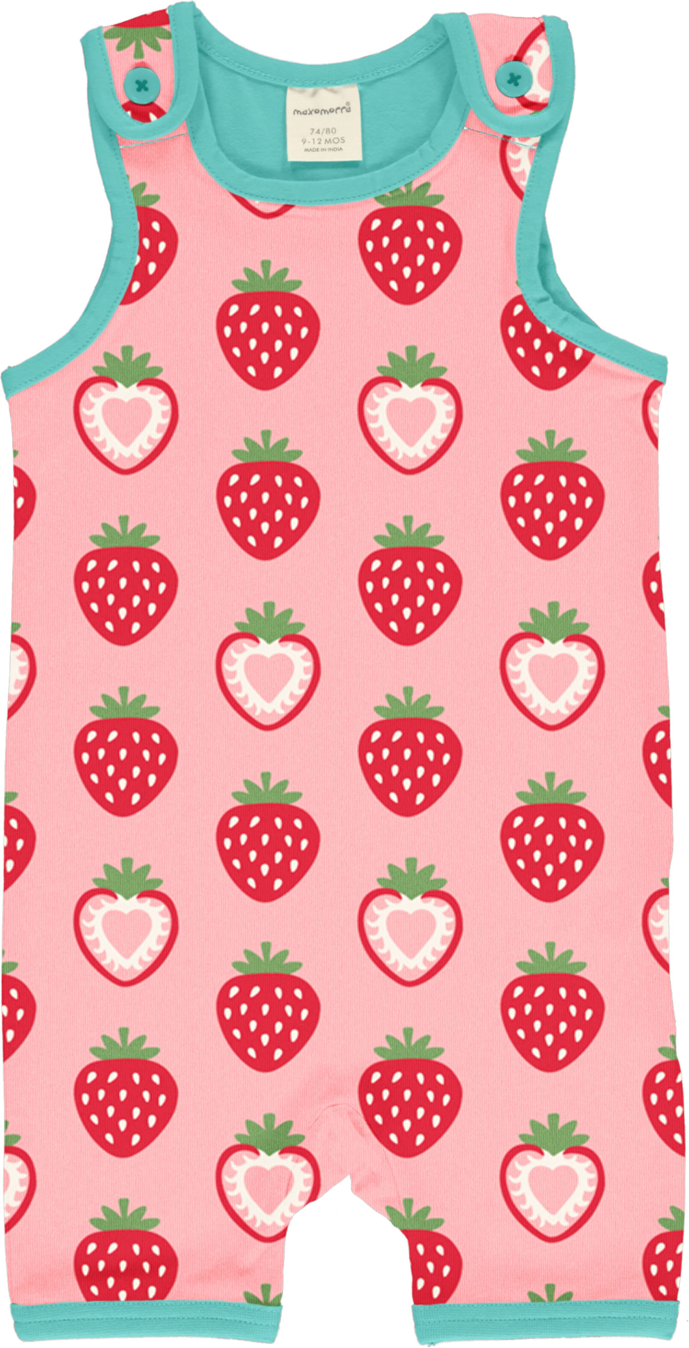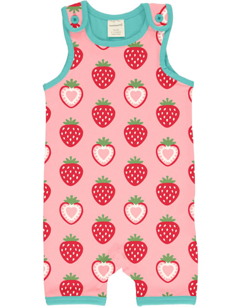 Toller Spieler in rosa mit kurzen Beinen und Erdbeer-Motiv von MAXOMORRA. Die Knöpfe an den Trägern machen das An- und Ausziehen zu einem Kinderspiel. Das weiche Material bietet einen hohen Tragekomfort.