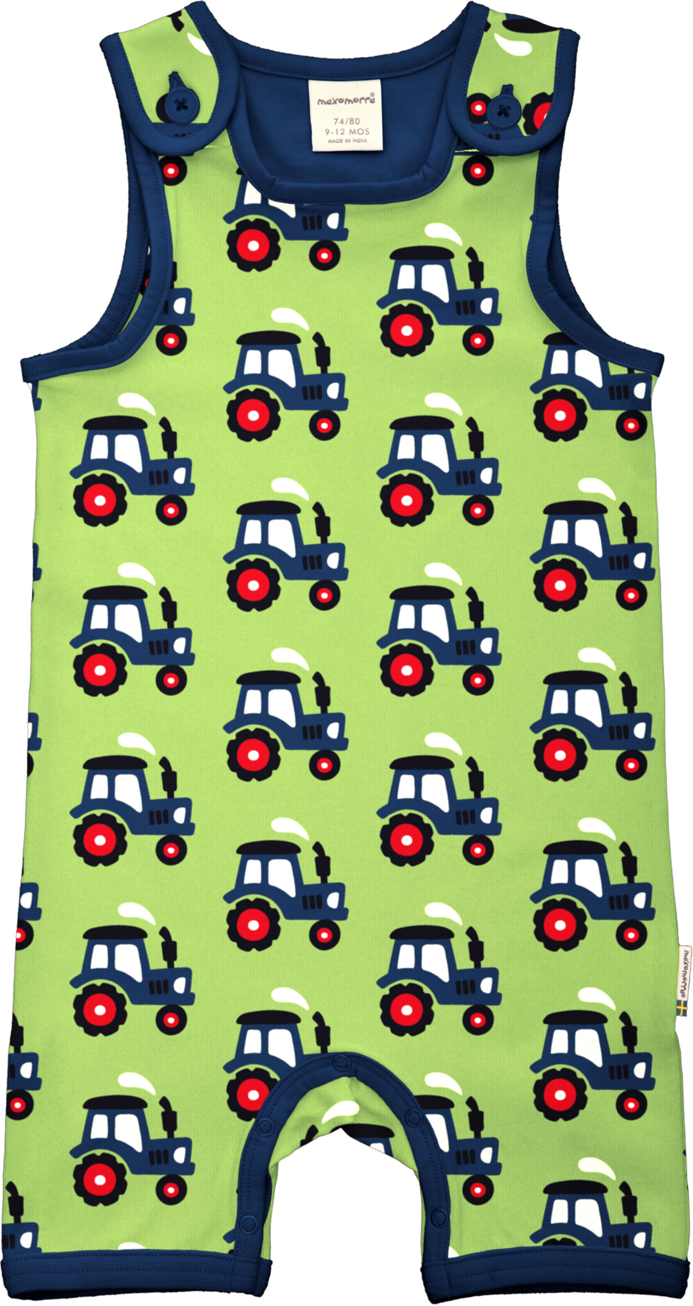 Maxomorra Strampler Spieler kurz TRACTOR grün/blau