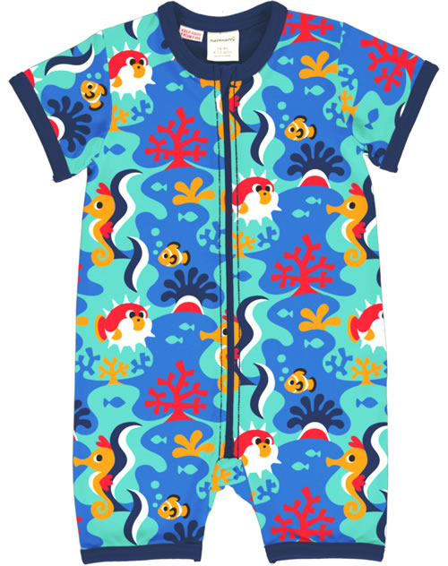 Maxomorra Strampler Spieler Kurzarm CORAL REEF blau