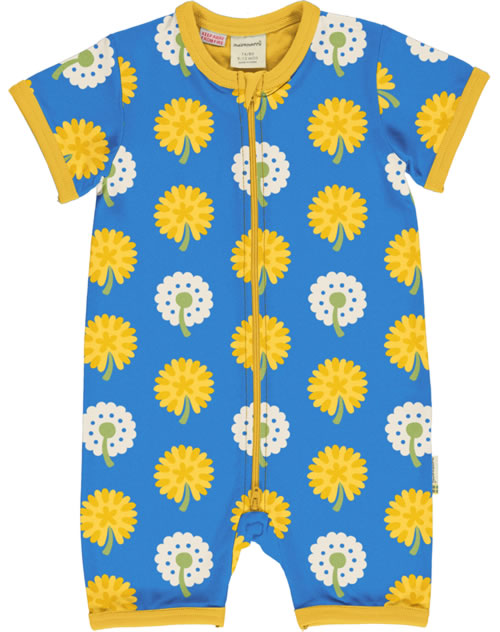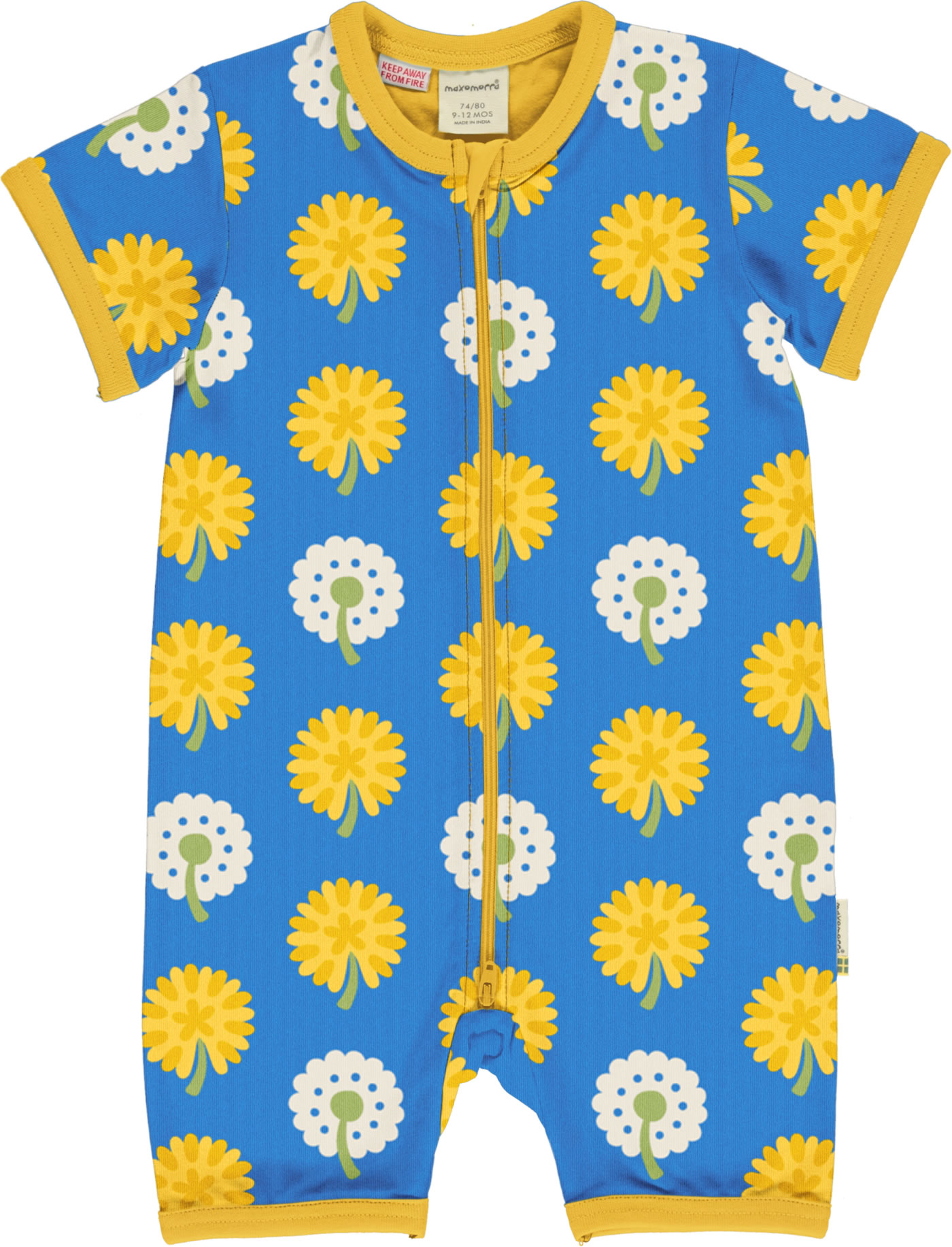 Maxomorra Strampler Spieler Kurzarm DANDELION blau/gelb