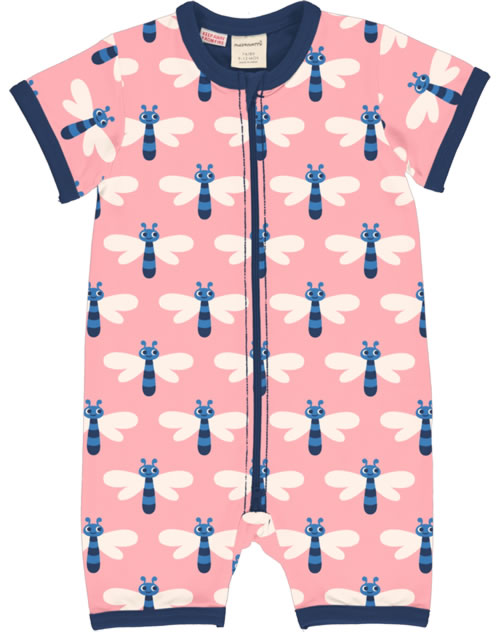 Maxomorra Strampler Spieler Kurzarm DRAGONFLY rosa