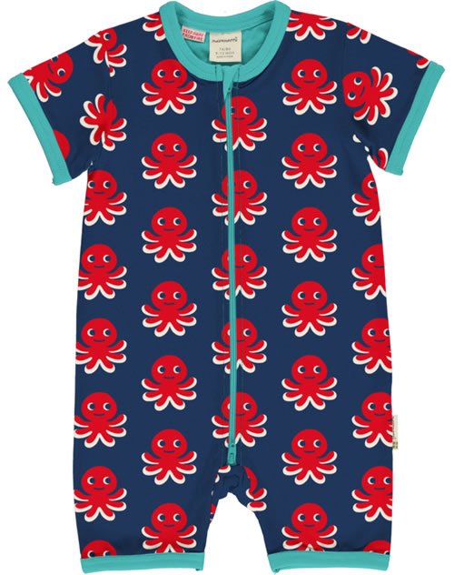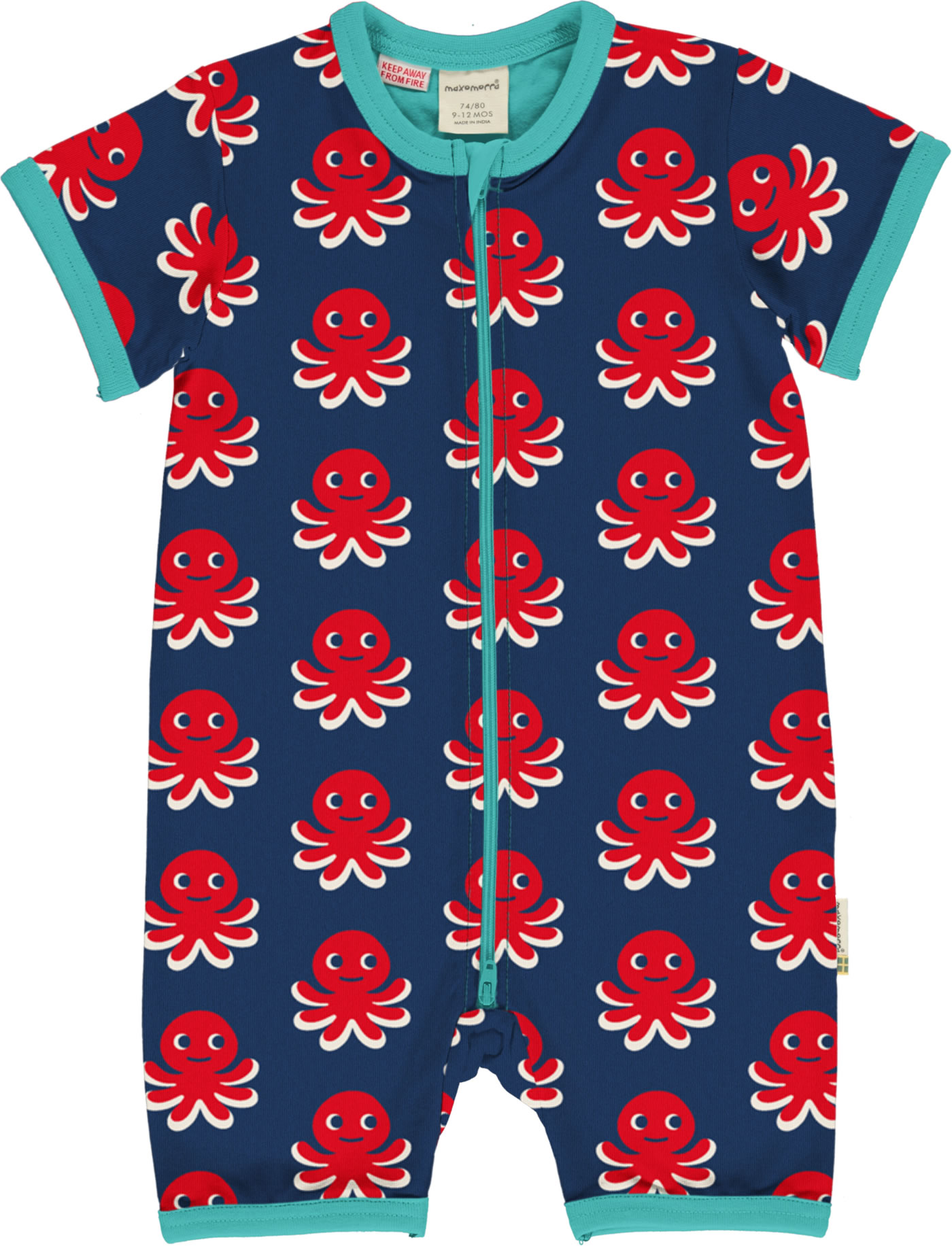 Maxomorra Strampler Spieler Kurzarm OCTOPUS blau/rot