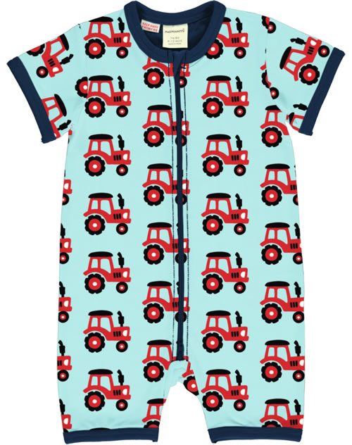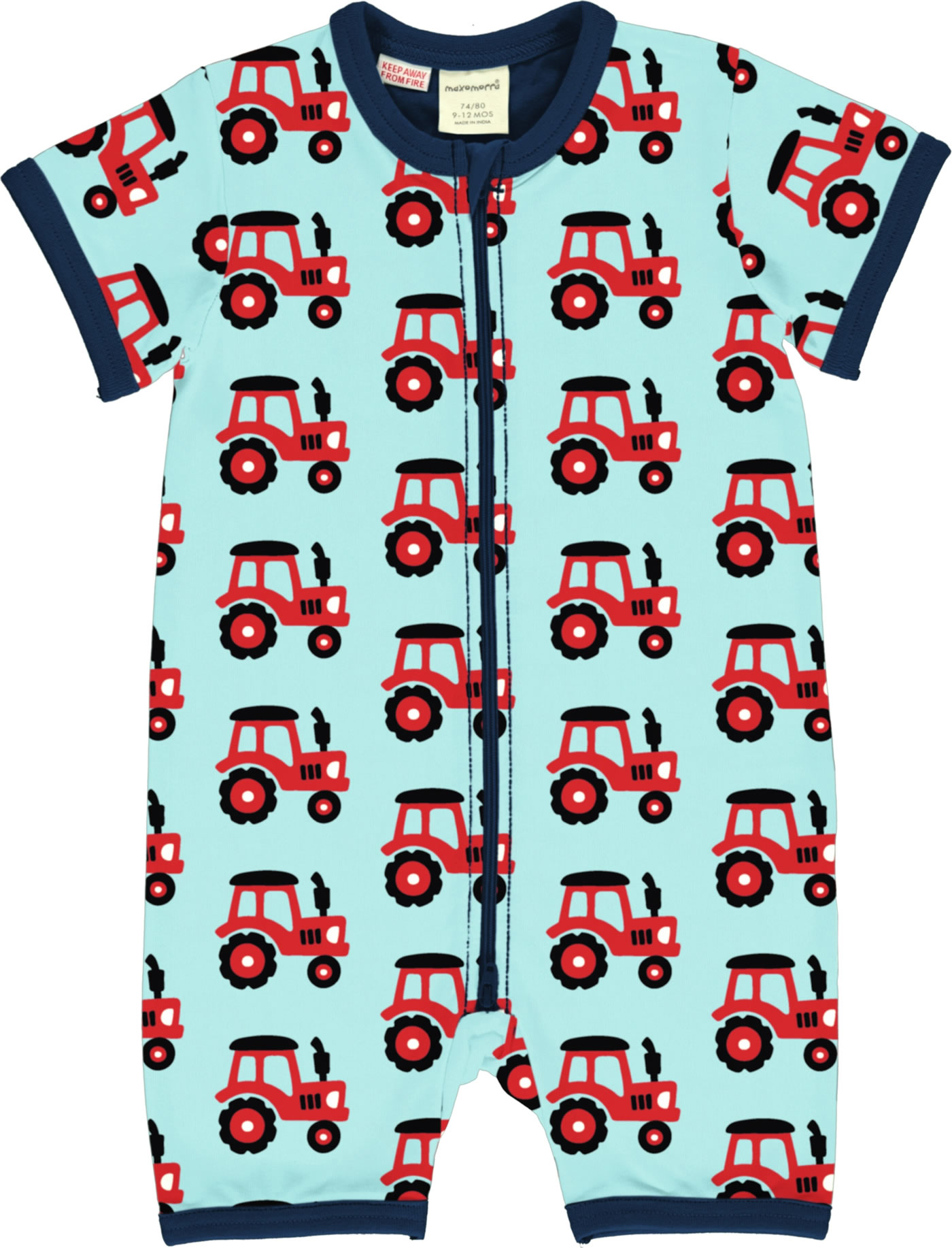 Maxomorra Strampler Spieler Kurzarm TRACTOR türkis