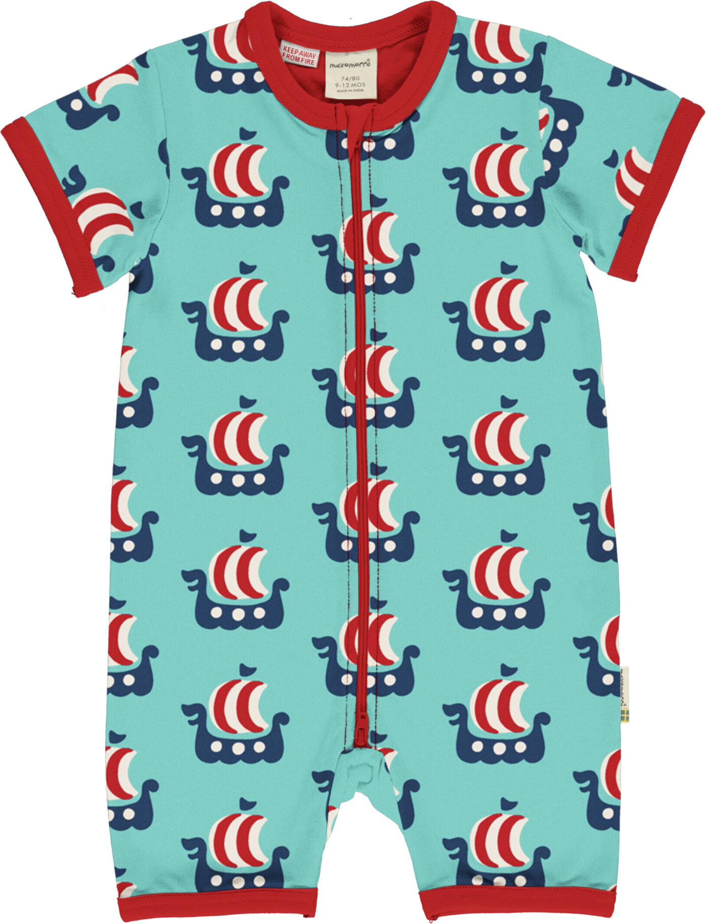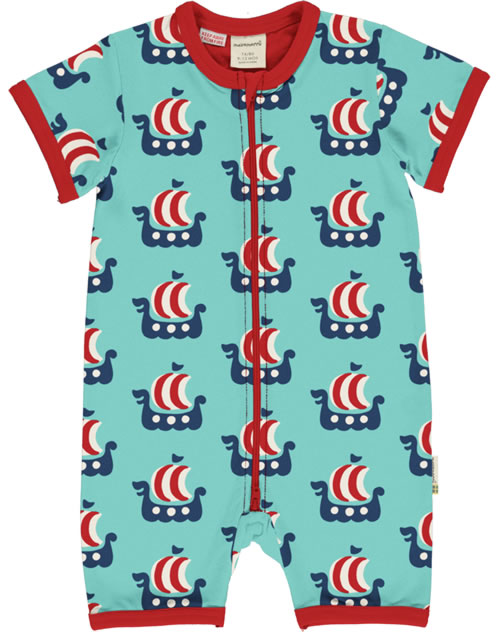 Maxomorra Strampler Spieler Kurzarm VIKING SHIP türkis