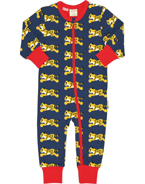 Maxomorra Strampler Spieler Langarm CHEETAH blau