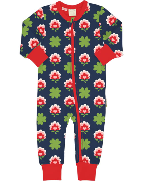 Maxomorra Strampler Spieler Langarm CLOVER blau