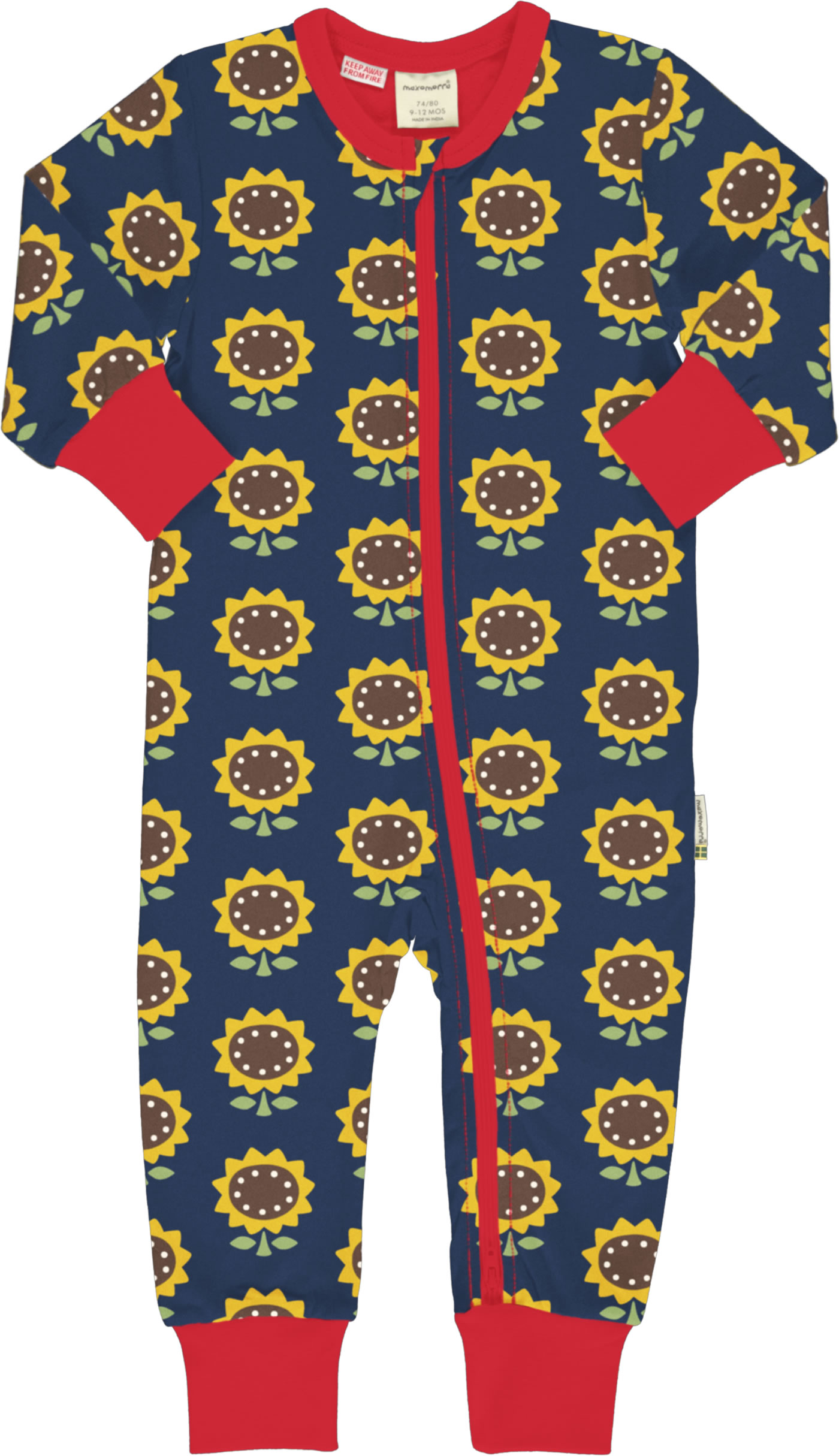 Toller Spieler in blau mit langen Ärmeln und Sonnenblumen-Motiv von MAXOMORRA. Der Reißverschluss auf der Vorderseite macht das An- und Ausziehen zu einem Kinderspiel. Weiche Bündchen in an Ärmel und Beinen sind ein toller Farbkontrast. Das hautfreundliche Material bietet einen hohen Tragekomfort.