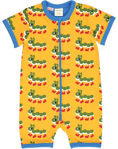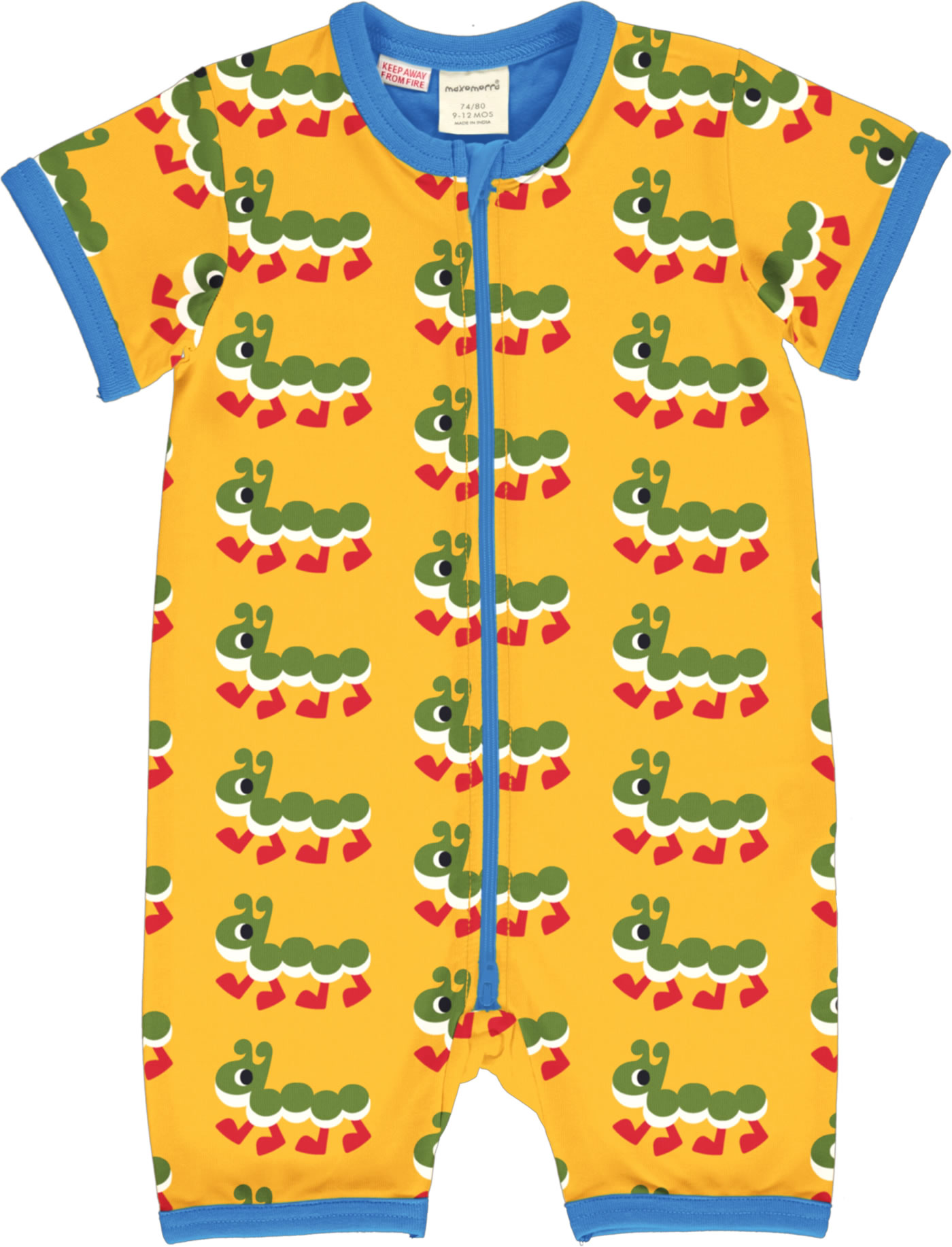 Toller Kurzarm-Spieler in gelb mit Raupen-Motiv von MAXOMORRA. Der durchgehende Reißverschluss mit Kinnschutz erleichtert das An- und Ausziehen. Das weiche Material bietet einen hohen Tragekomfort.