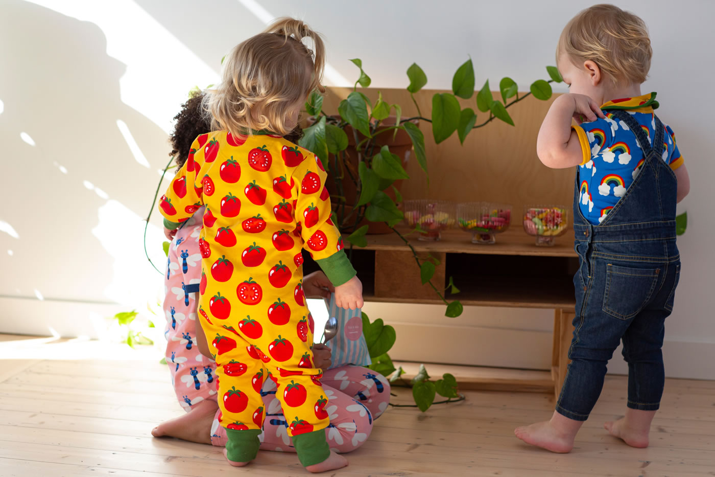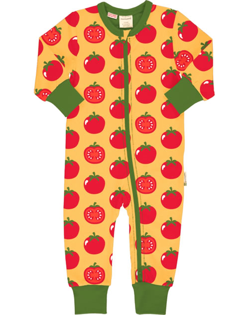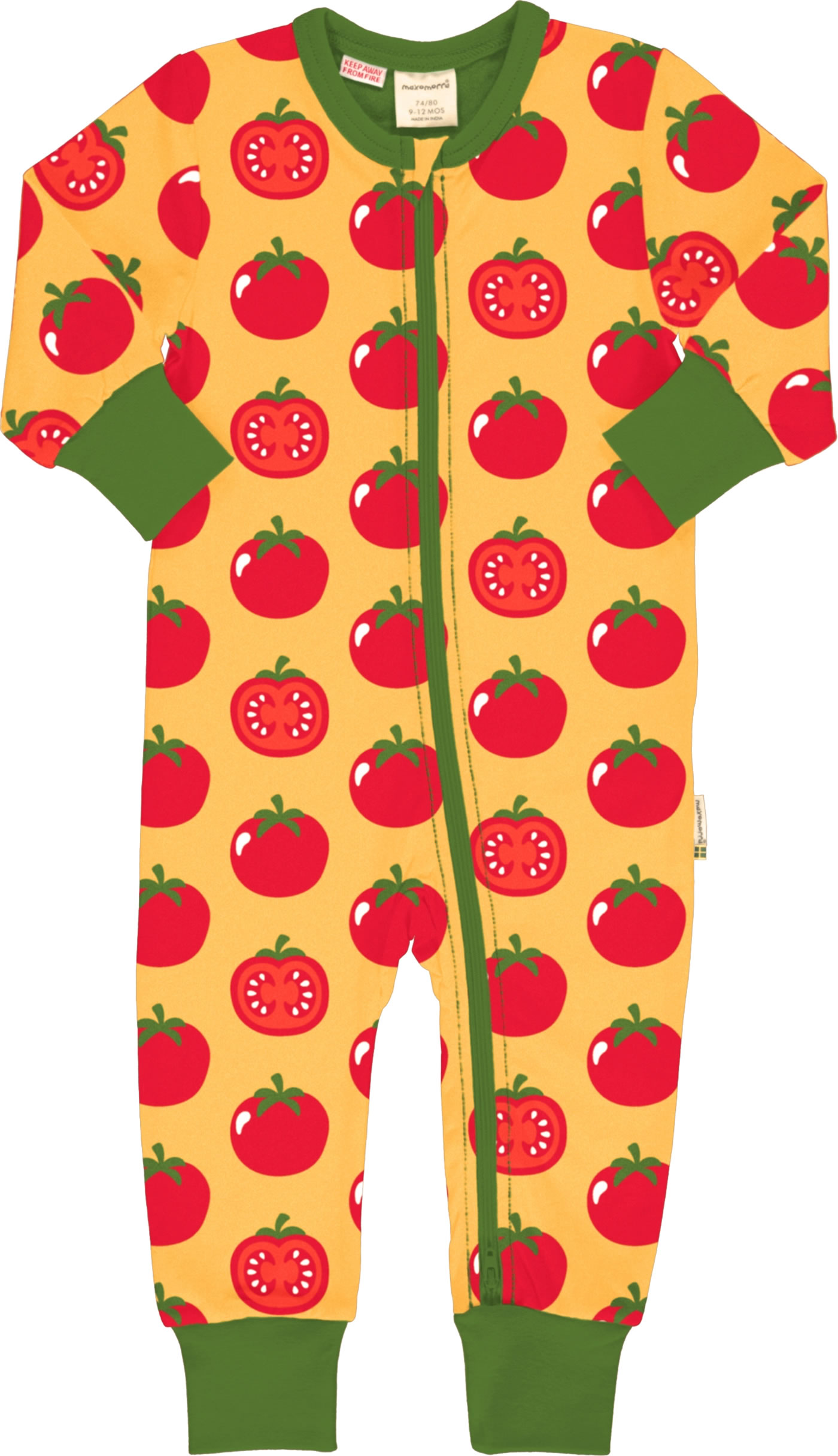 Toller Spieler in gelb mit langen Ärmeln mit Tomaten-Motiv von MAXOMORRA. Der Reißverschluss auf der Vorderseite macht das An- und Ausziehen zu einem Kinderspiel. Weiche Bündchen in an Ärmel und Beinen sind ein toller Farbkontrast. Das hautfreundliche Material bietet einen hohen Tragekomfort.
