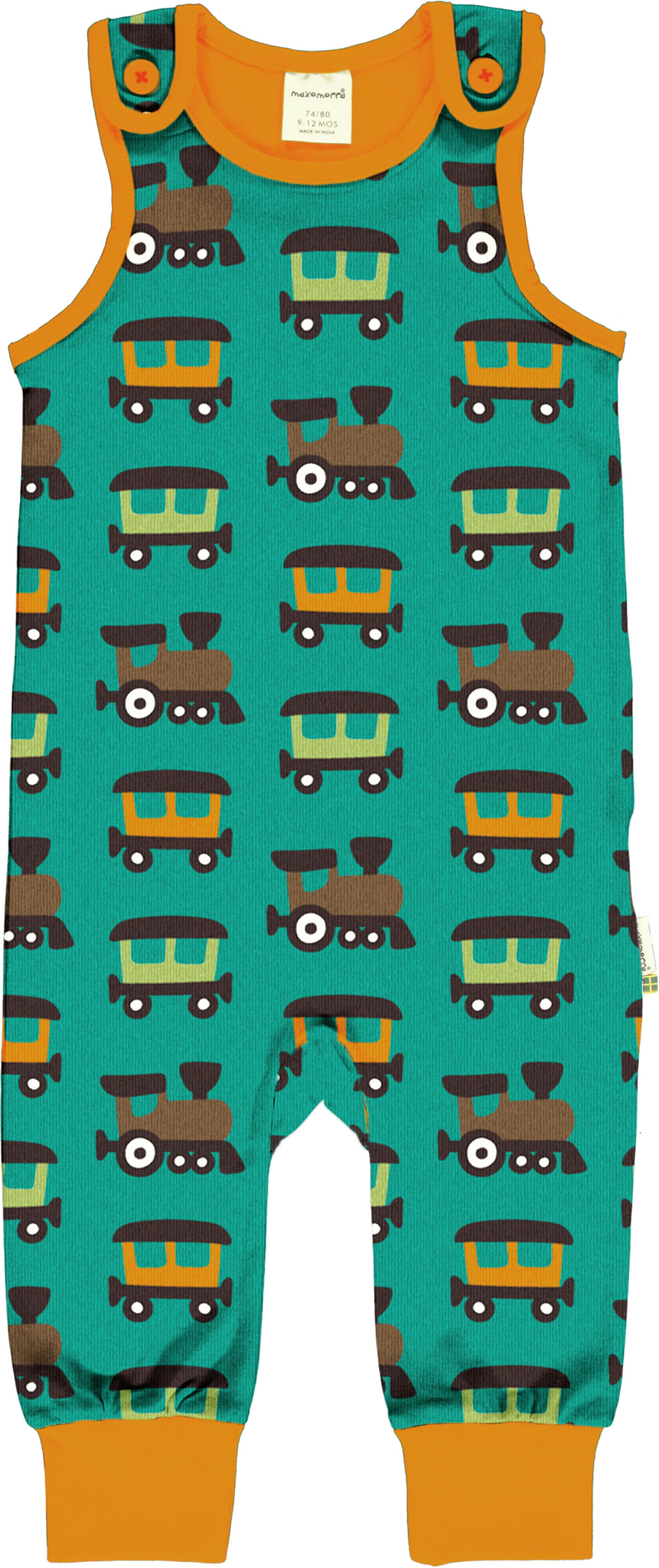 Maxomorra Strampler TRAIN petrol/orange