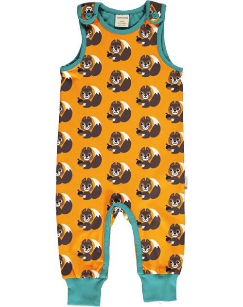 Toller Spieler in orange mit Eichhörnchen-Motiv von MAXOMORRA. Die Knöpfe an den Trägern machen das An- und Ausziehen zu einem Kinderspiel. Das weiche Material bietet einen hohen Tragekomfort.