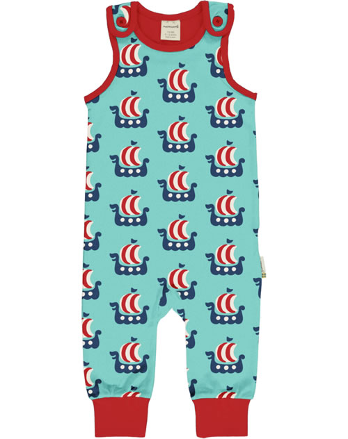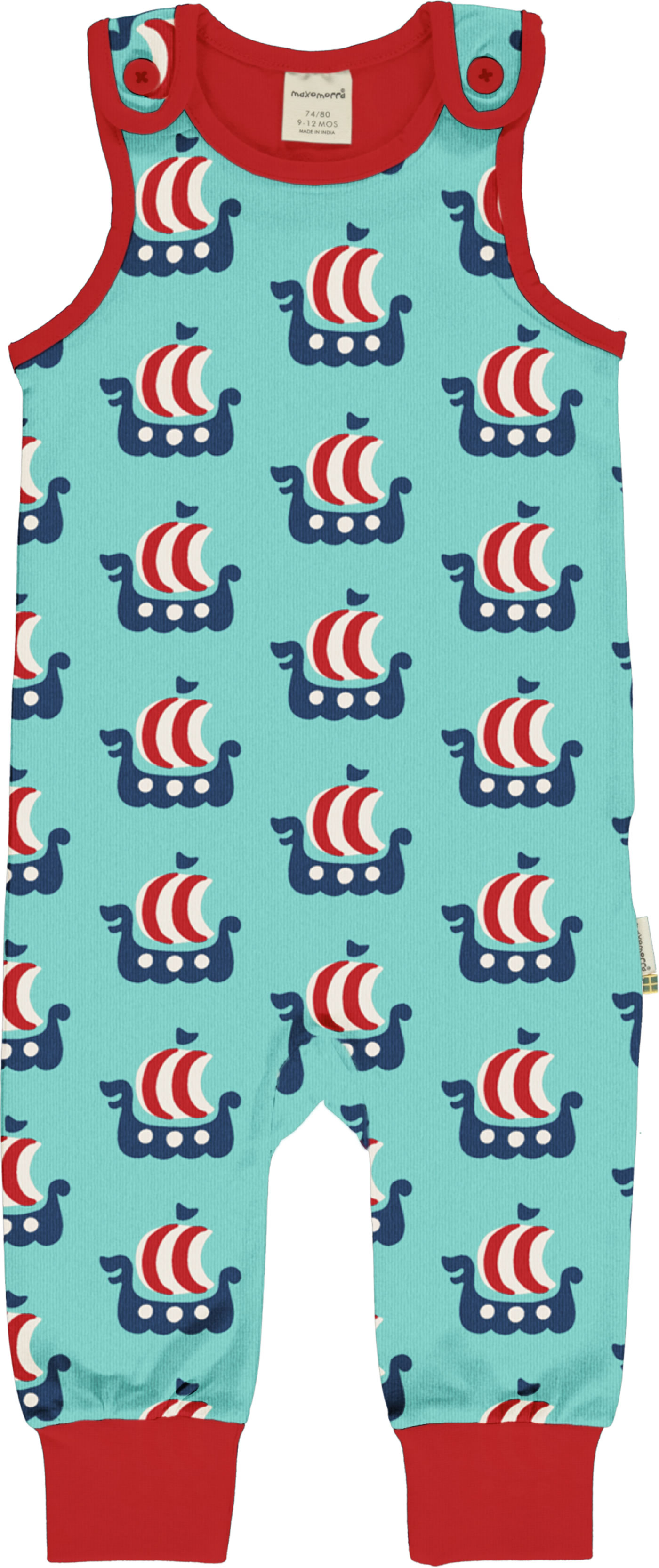 Toller Spieler in türkis mit abenteuerlichem Wikingerschiff-Motiv von MAXOMORRA. Die Knöpfe an den Trägern machen das An- und Ausziehen zu einem Kinderspiel. Das weiche Material bietet einen hohen Tragekomfort.