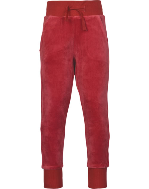 Gemütliche Sweat-Hose aus weichem Nicki-Stoff in rot von MAXOMORRA. Das beliebte Kleidungsstück hat einen breiten, weichen Gummibund, der für einen guten Sitz sorgt. Die Weite lässt sich mit einem Tunnelzug regulieren. Ein schönes Detail sind die Einstecktaschen vorn und hinten.