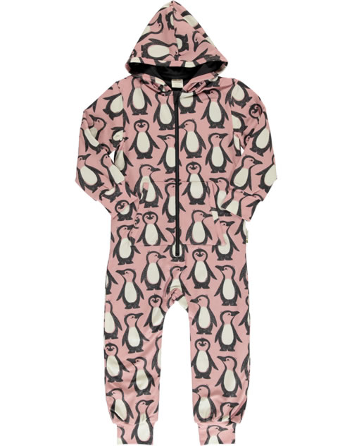 Maxomorra Sweat-Overall mit Kapuze PINGUIN FAMILIE rosa