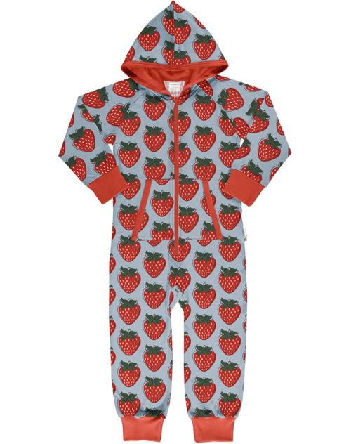 Maxomorra Sweat-Overall mit Kapuze STRAWBERRY rot GOTS