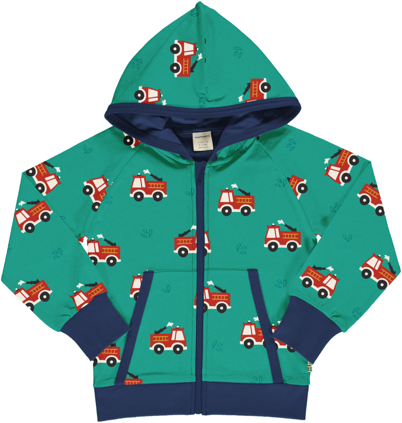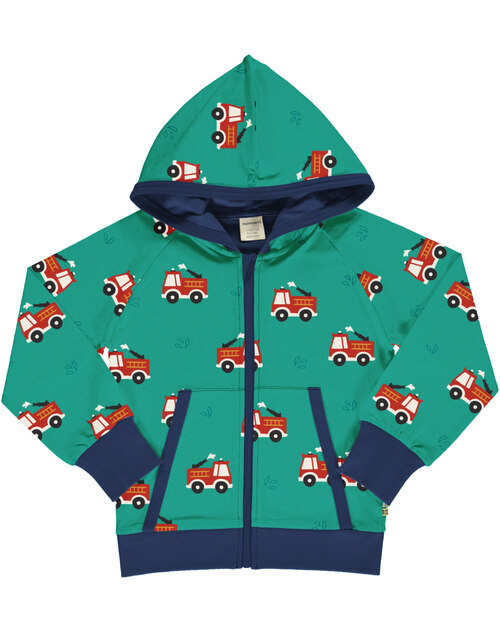 Maxomorra Sweatjacke mit Kapuze aus Baumwolle mit Feuerwehr FIRE TRUCK - Grün