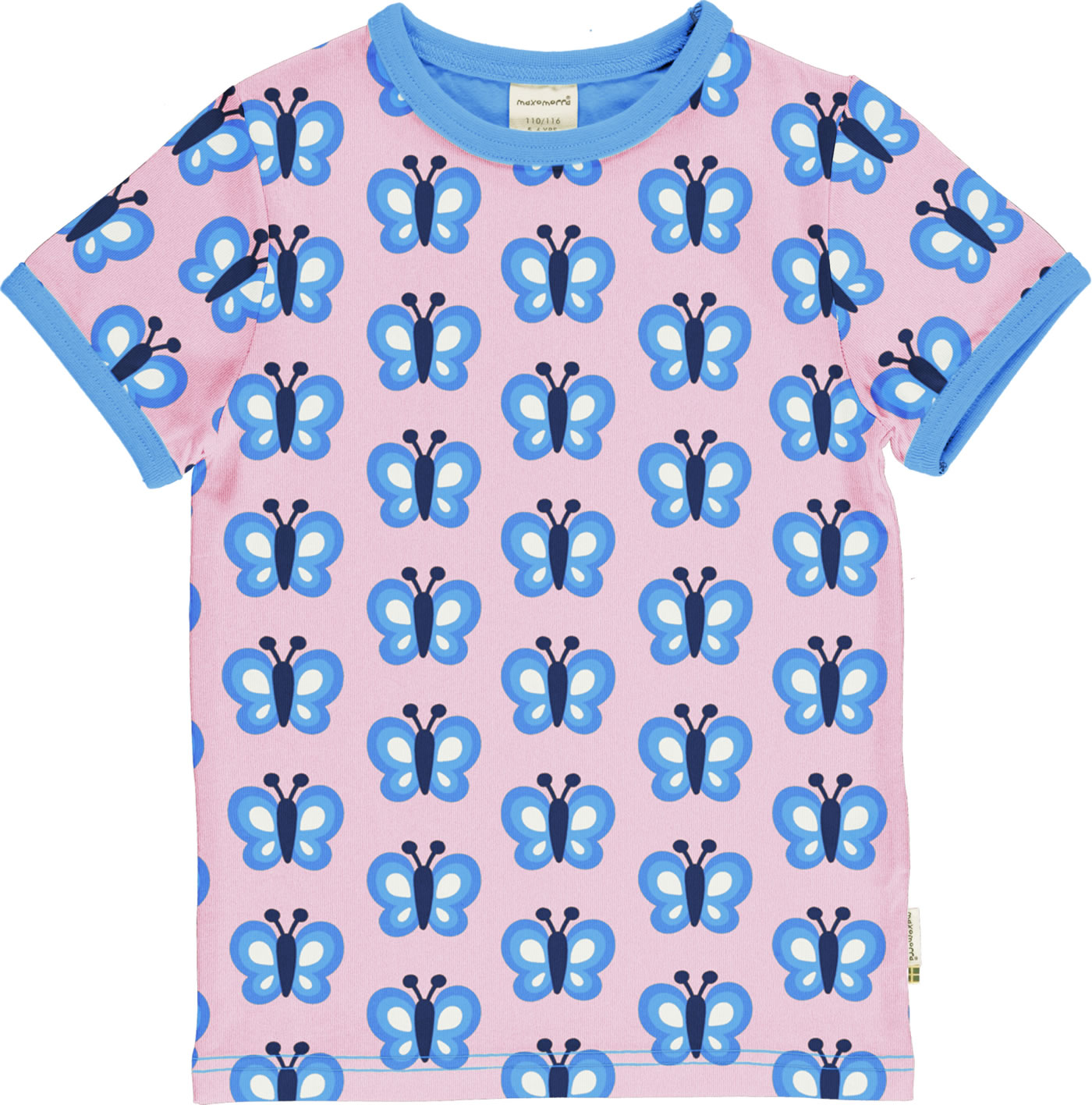 Maxomorra T-Shirt Kurzarm BLUEWING BUTTERFLY rosa GOTS