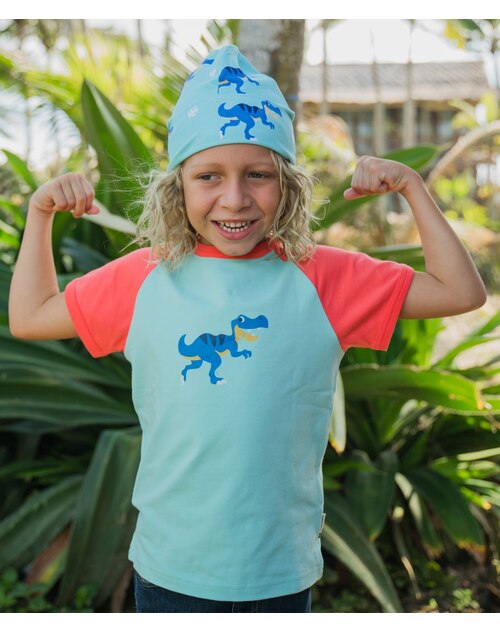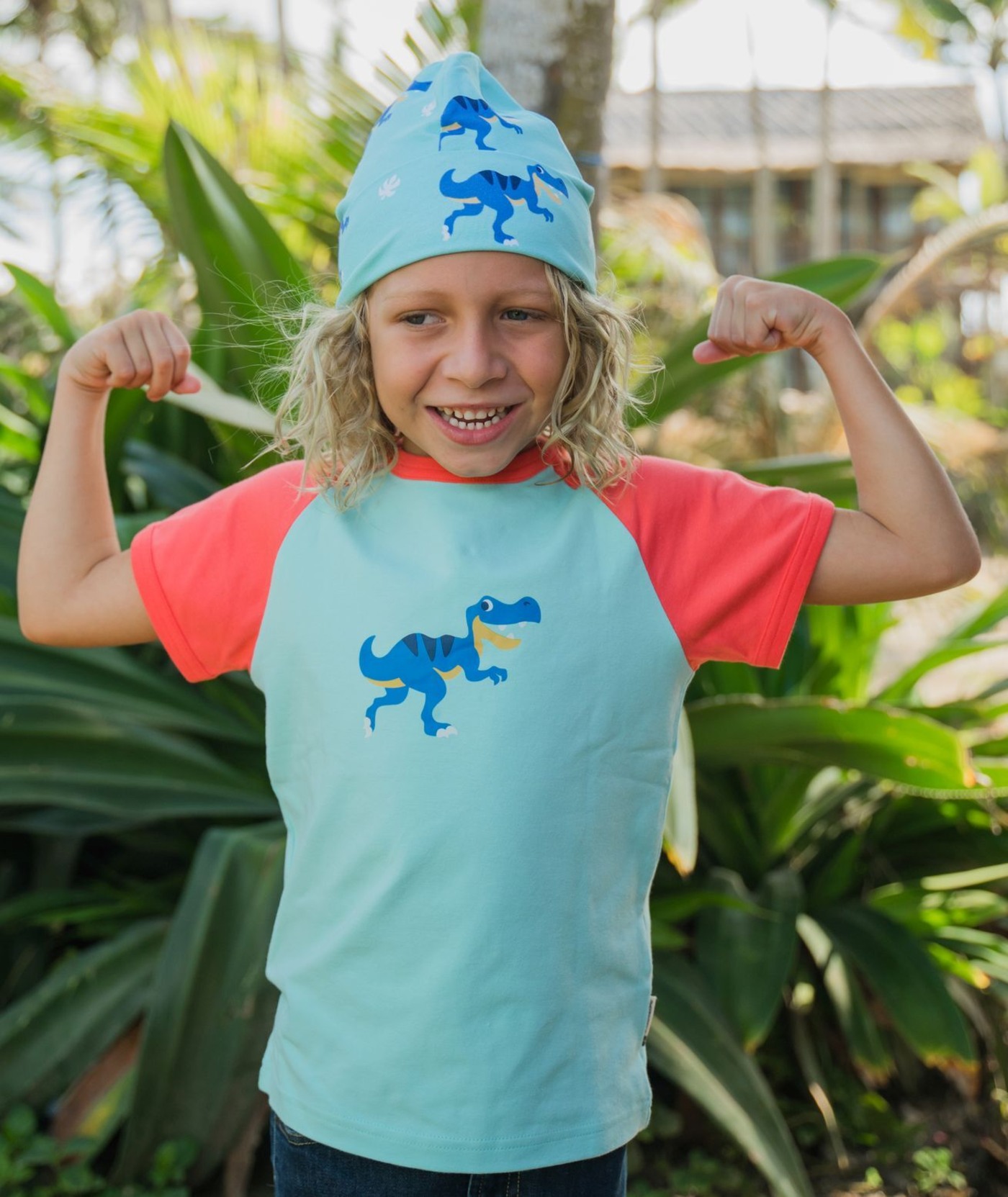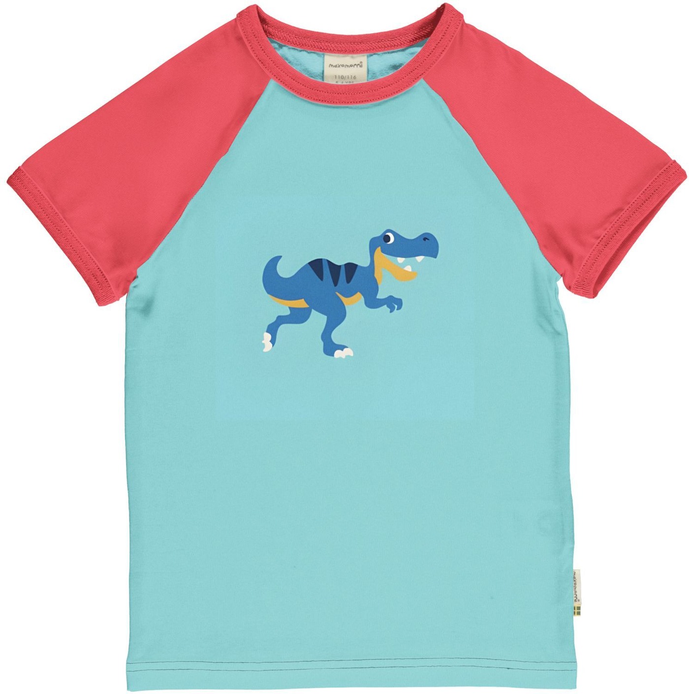Maxomorra T-Shirt Kurzarm Raglan aus Bio-Baumwolle - Dino Blau