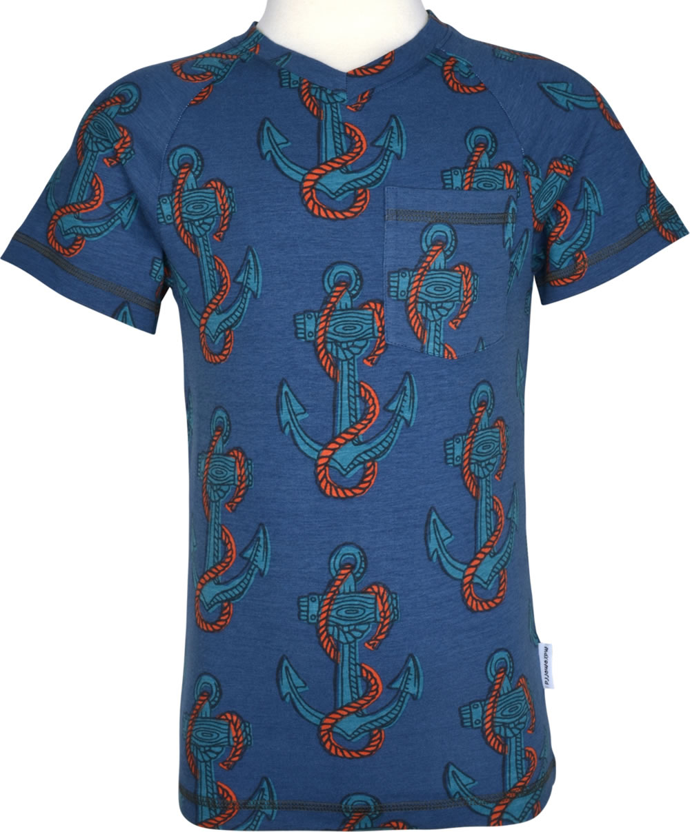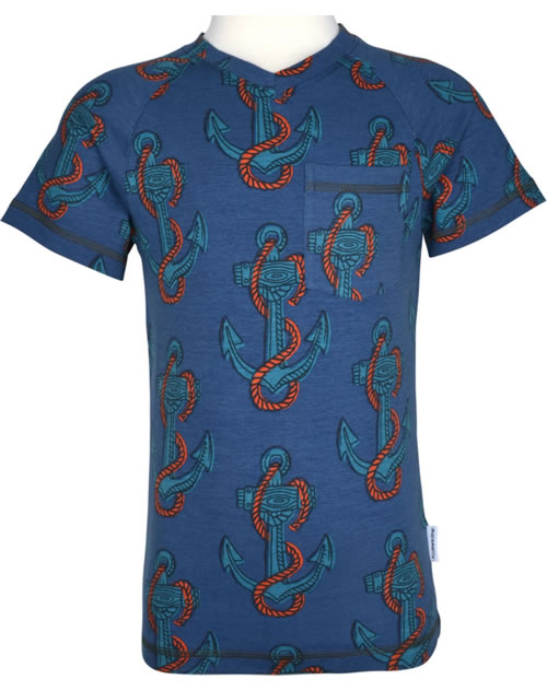 T-Shirt in blau und rot mit kurzen Ärmeln und tollen Anker-Motiven von MAXOMORRA für Jungen und Mädchen. Ein schönes Detail sind die kleine aufgesetzte Brusttasche und der V-Ausschnitt. Der gerade Schnitt und das weiche Material sorgen für einen hohen Tragekomfort.