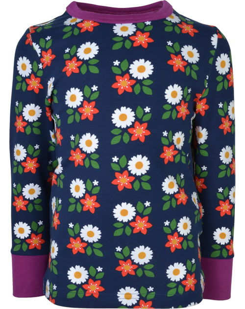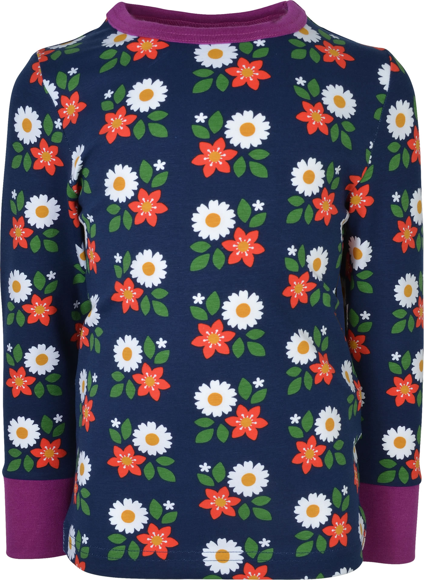 Maxomorra T-Shirt Langarm FLOWERS blau GOTS